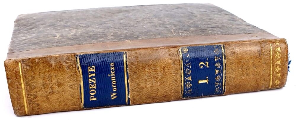 TWARDA OPRAWA PÓŁSKÓREK Z EPOKI, KARTON MARMORYZOWANY, GRZBIET OZDOBNY Z SZYLDZIKAMI I ZŁOCENIAMI OBCIĘCIA KART PRÓSZONE