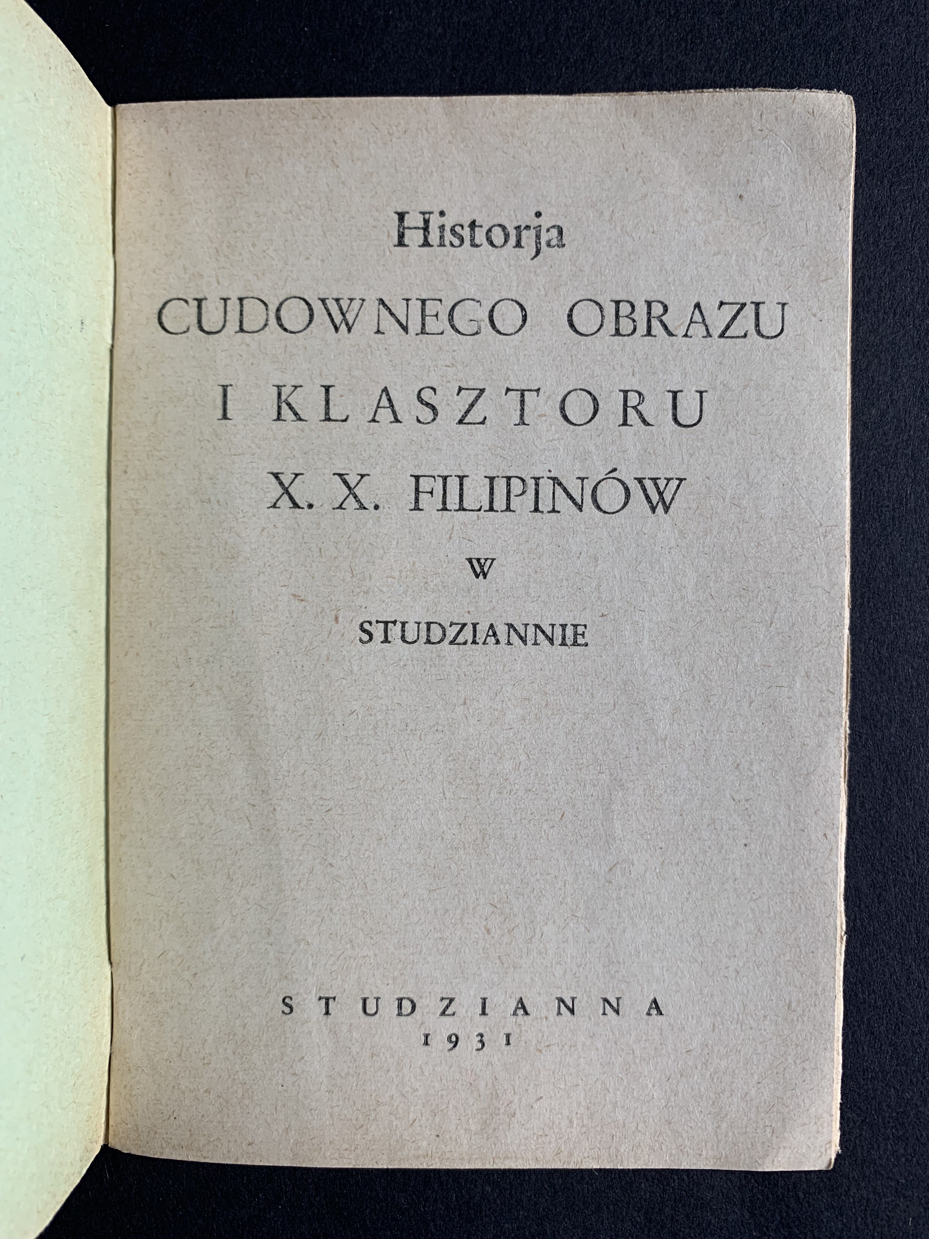Historja cudowneo obrazu I Klasztoru X.X. Filipinów w Studziannie. Studzianna [1938]