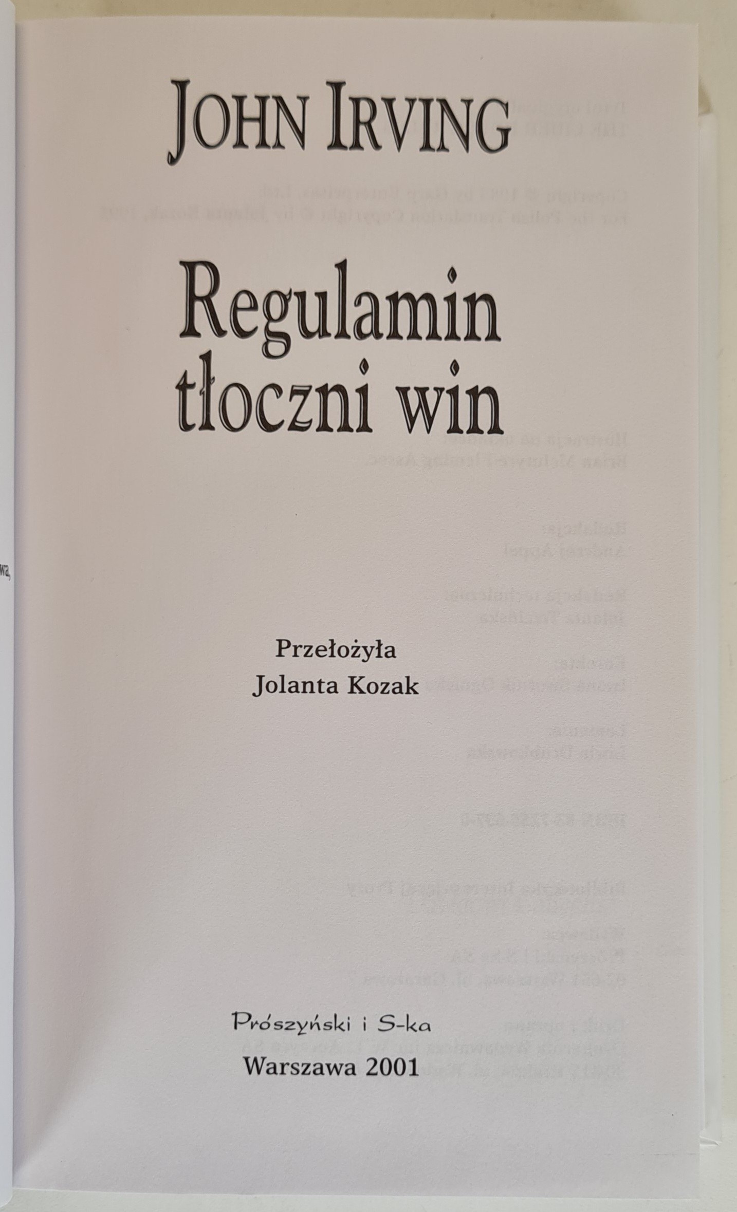 IRVING John - REGULAMIN TŁOCZNI WIN z serii Biblioteczka Interesującej Prozy