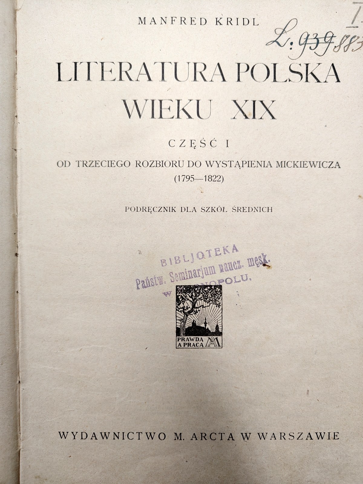 Kridl Manfred - Literatura Polska wieku XIX cz. I ( od trzeciego rozbioru do wystąpienia Mickiewicza 1795 - 1822,