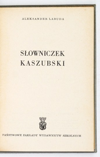 LABUDA Aleksander - Słowniczek kaszubski. Warszawa 1960. Państw. Zakł. Wyd. Szk. 16d, s. 114, [2]. opr. oryg. pł.