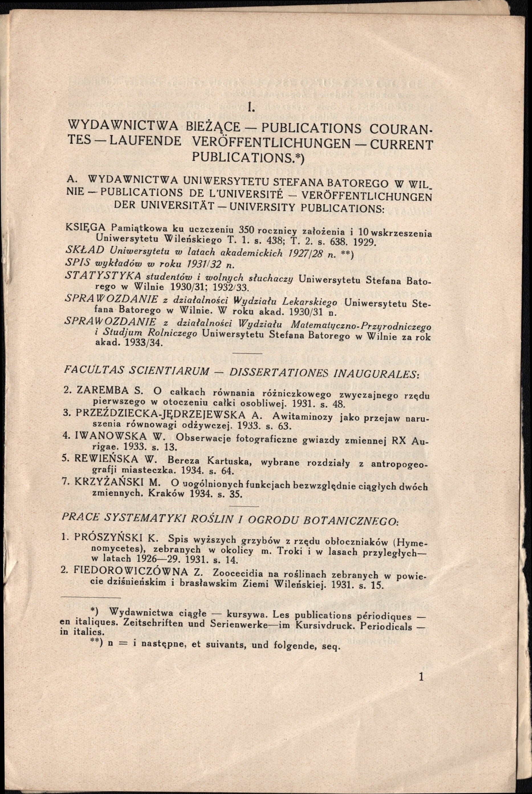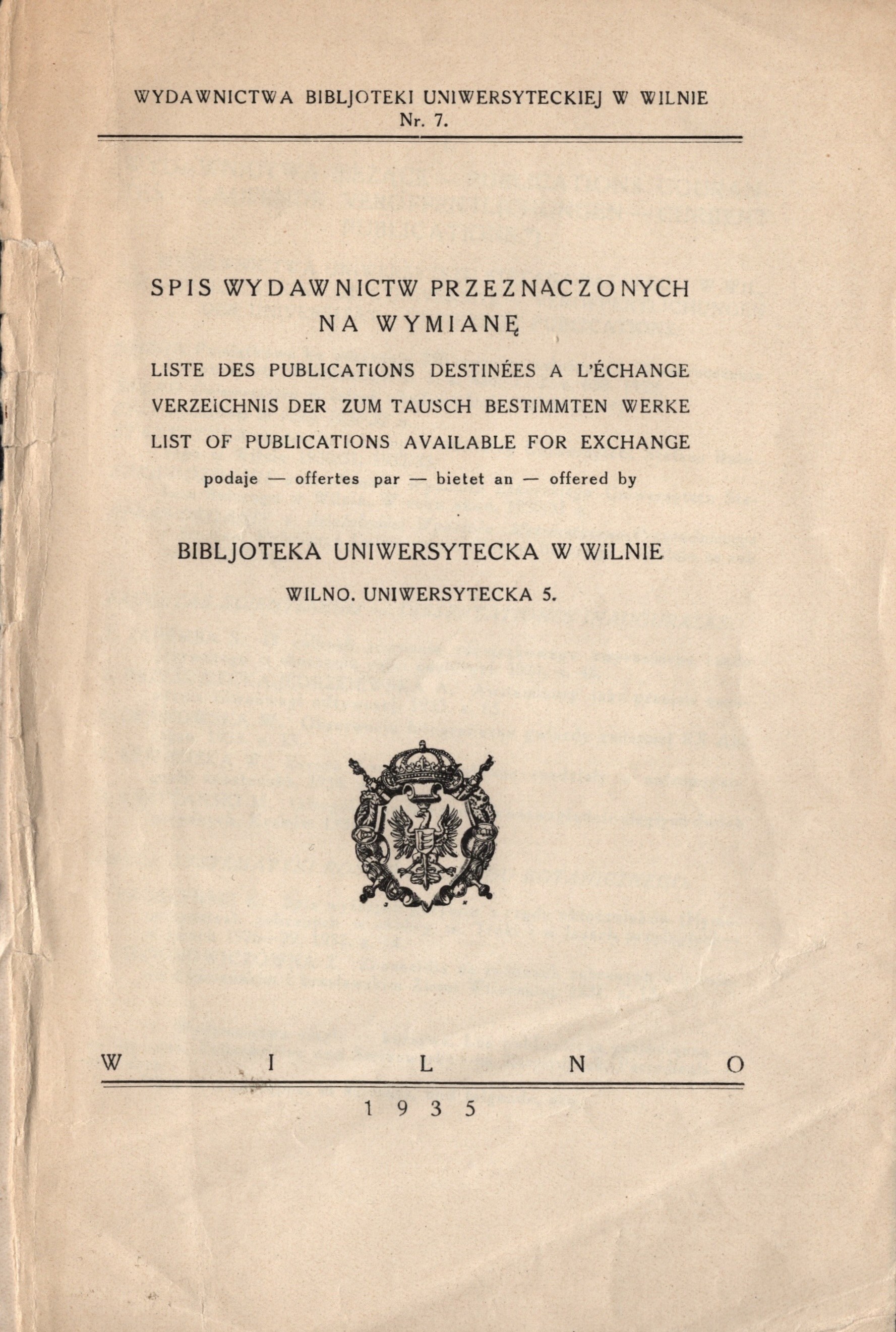 SPIS wydawnictw przeznaczonych na wymianę - Bibljoteka Uniwersytecka w Wilnie. 1935.