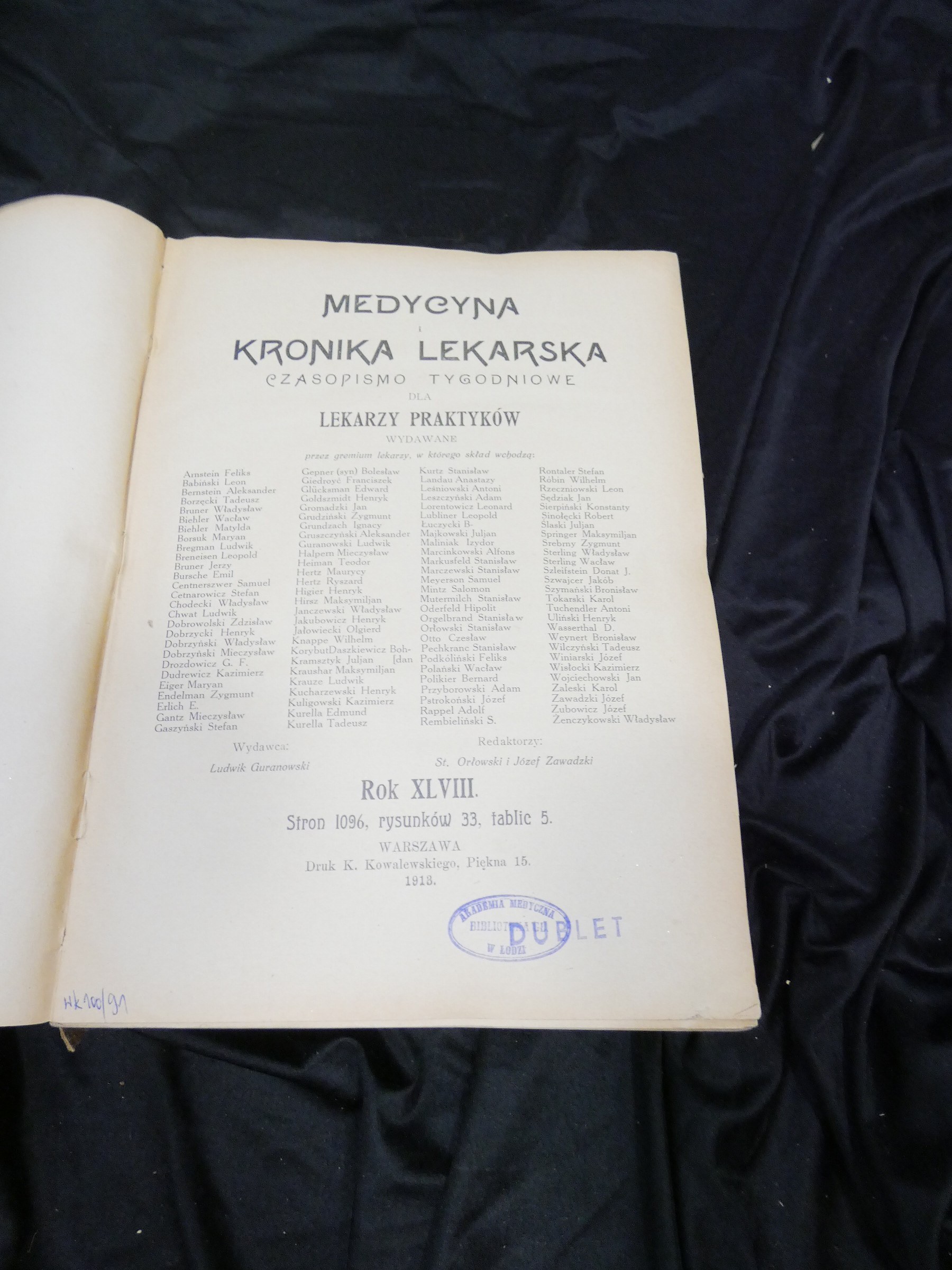 ZAWIERA STEMPEL AKADEMII MEDYCZNEJ W ŁODZI ORAZ SZPITALA KAROLA I MARII W WARSZAWIE ORAZ