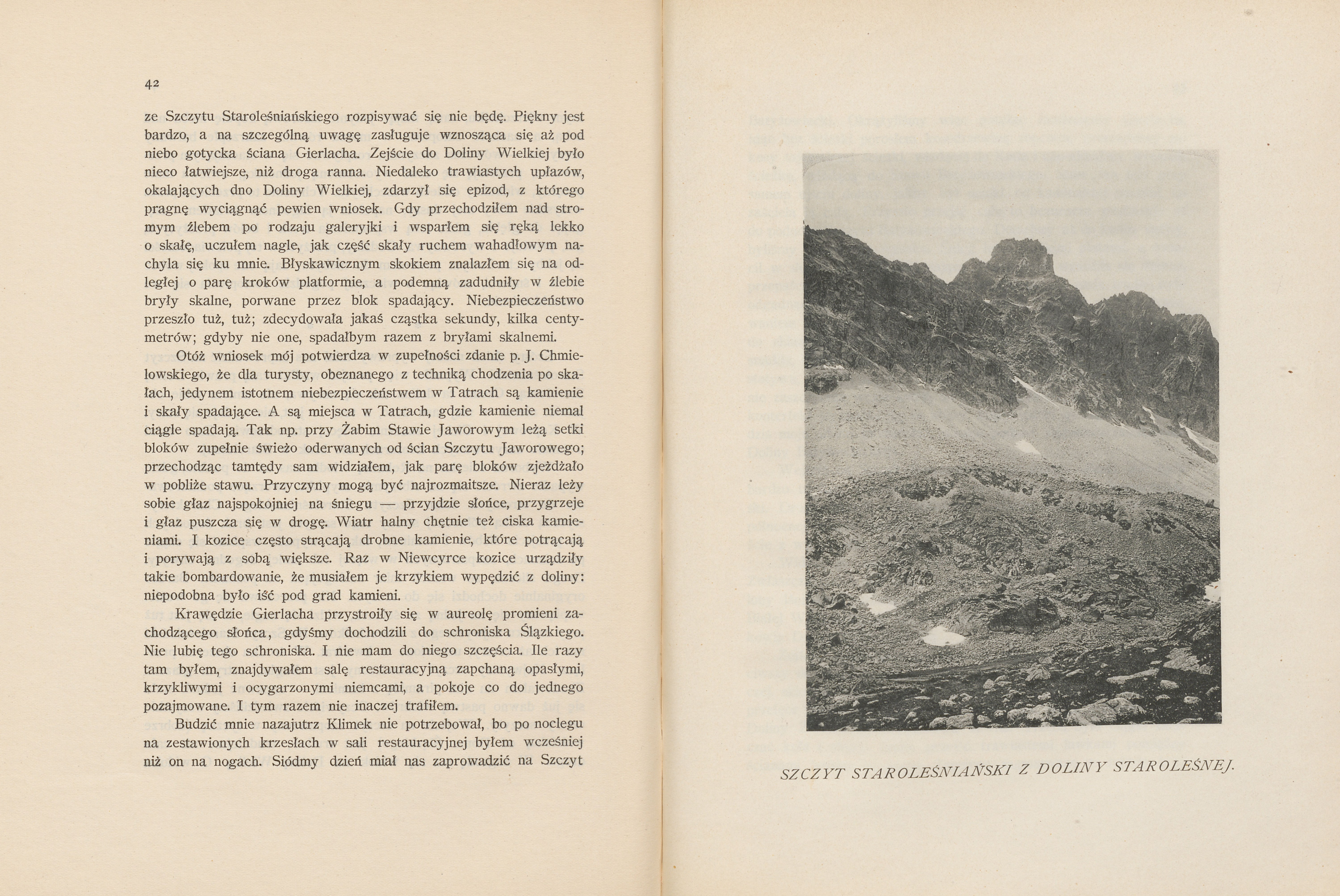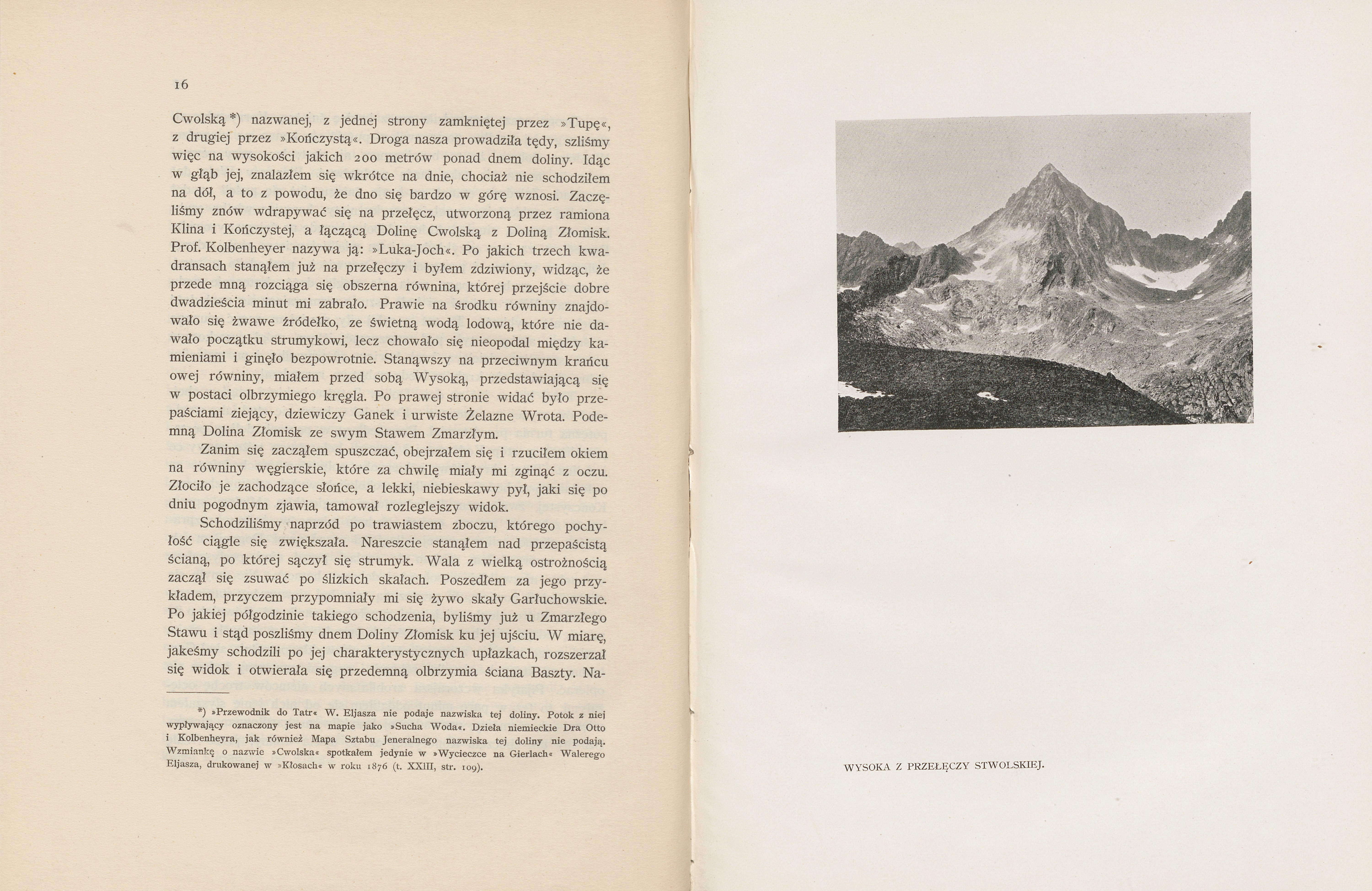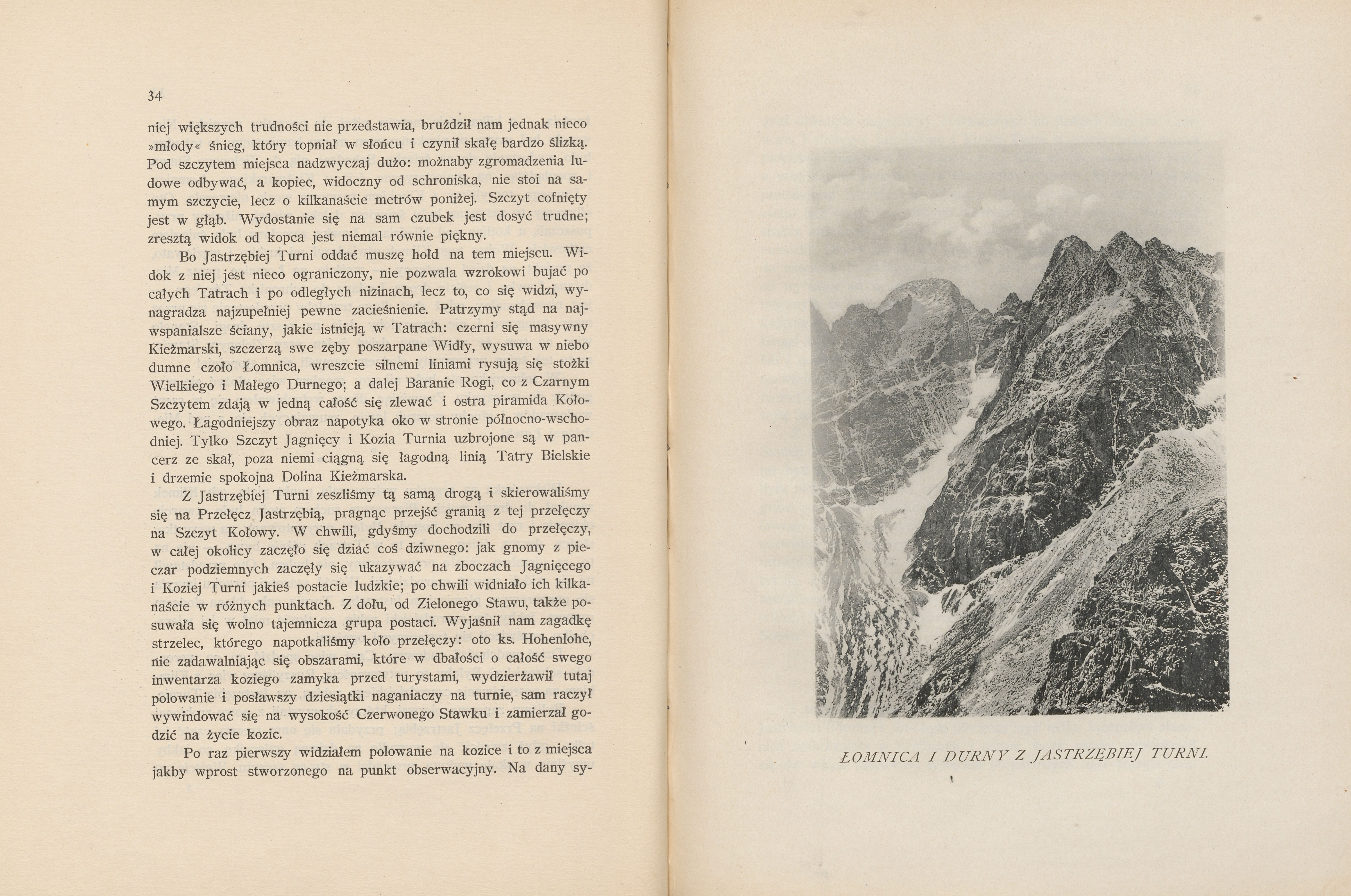Kraków 1910. Nakładem Sekcji Turystycznej Towarzystwa Tatrzańskiego. 20,5x27,5 cm, str. XI, 82, czarno-białe fotografie na oddzielnych kartach, półskórkowa współczesna oprawa introligatorska, zachowana okładka wydawnicza. Stan dobry (pieczątki numeryczne, podklejenia papierem okładki i ubytków kilku ostatnich stron).