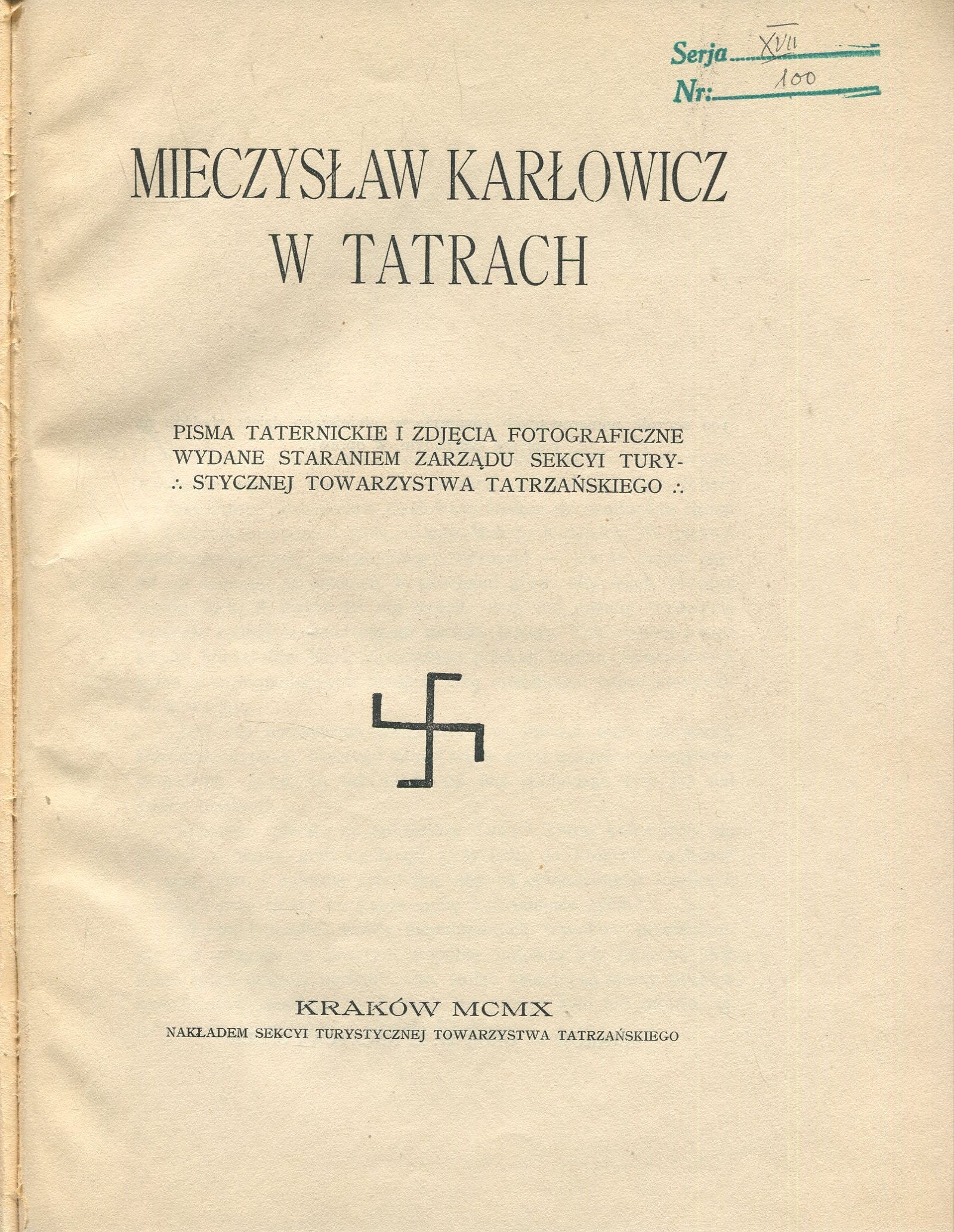 Publikacja poświęcona pamięci Mieczysława Karłowicza (1876-1909), kompozytora, dyrygenta, taternika, fotografa i publicysty, jednego z prekursorów polskiego taternictwa, który zginął w 1909 roku w rejonie Małego Kościelca. Zawiera wybór jego tekstów o tematyce tatrzańskiej oraz 26 fotografii, które Karłowicz sam wykonał podczas swoich wędrówek po Tatrach.