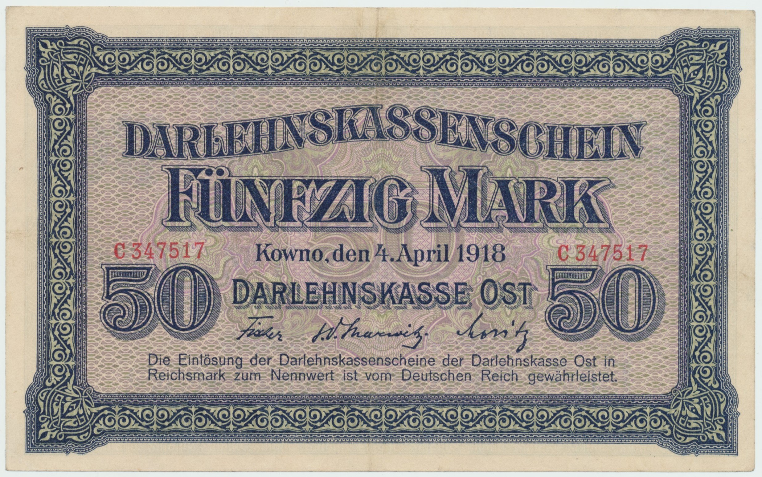 Banknot nieznanego autorstwa, znak wodny zahaczające "Zetki" i gwiazdy sześcioramienne z literami GD.