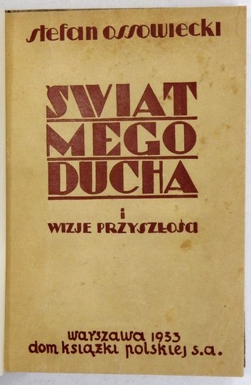 OSSOWIECKI Stefan - Świat mego ducha i wizje przyszłości. Warszawa 1933. Dom Książki Pol. 8, s. 367, [1], tabl. 4. opr. wsp. kart. z zach. okł. brosz.