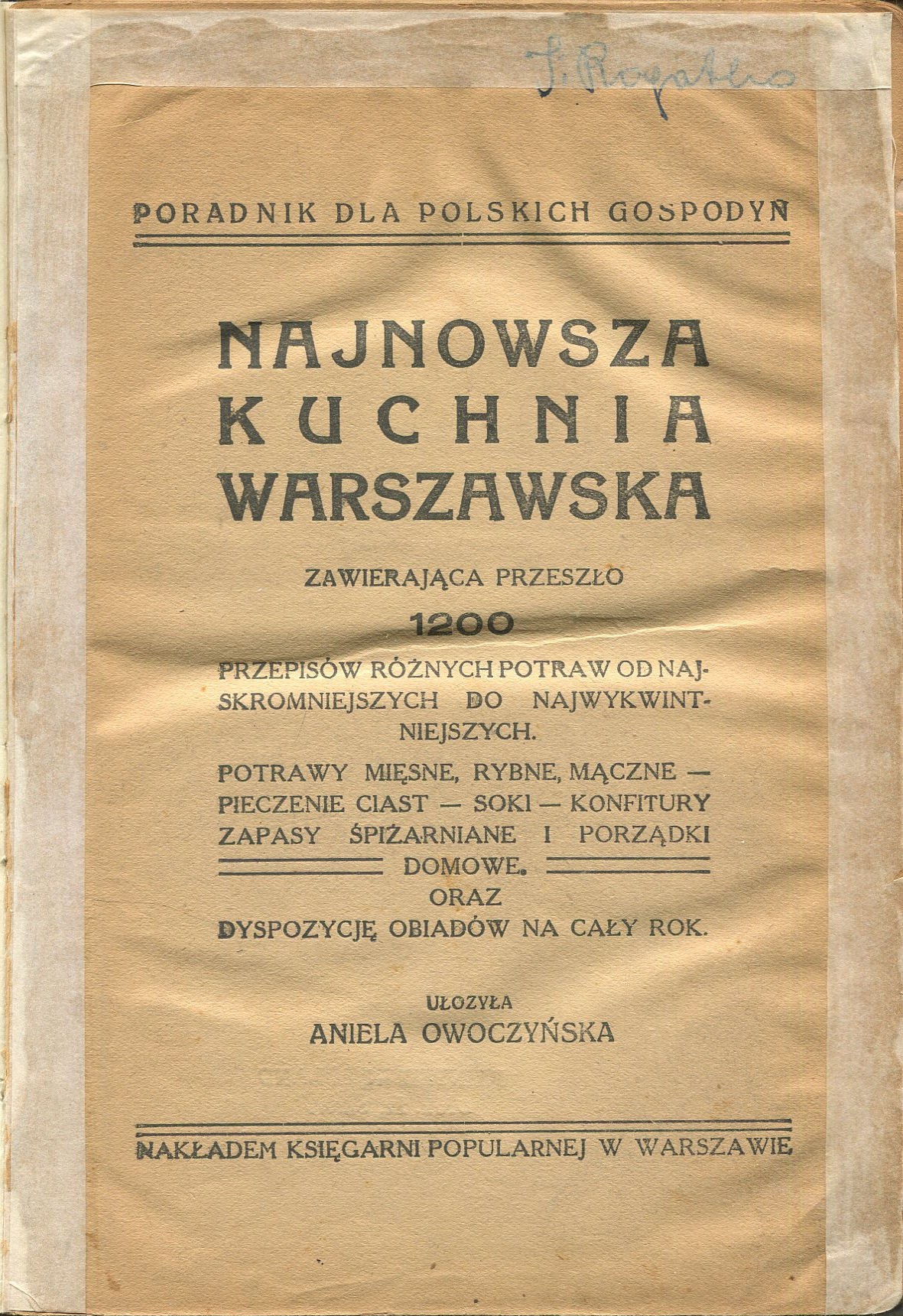 Poradnik dla gospodyń domowych zawierający ponad tysiąc wskazówek dotyczących prowadzenia domu oraz przepisów na potrawy mięsne, rybne, mączne, ciasta, konfitury itp.