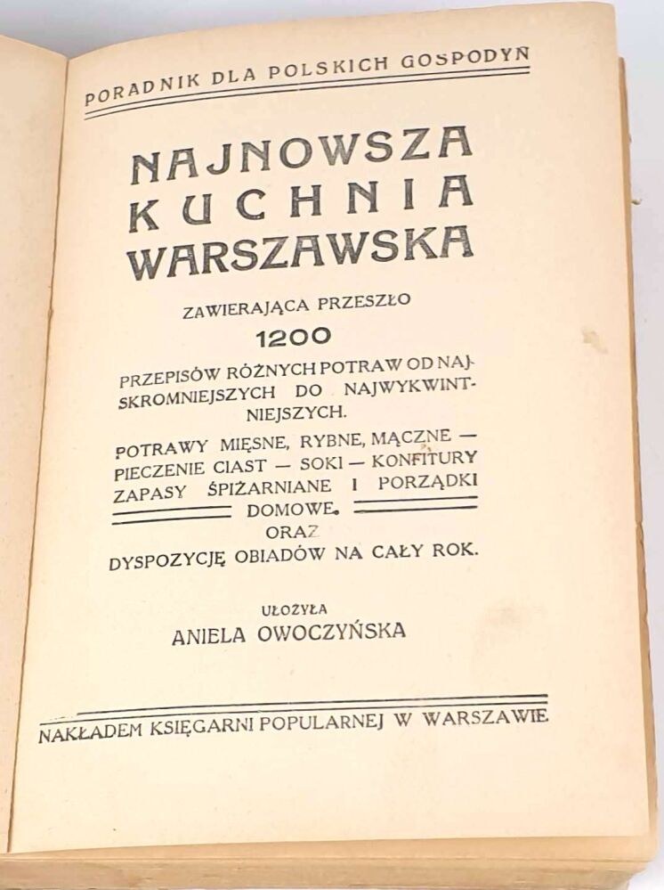 ZAWIERA PONAD 1200 PRZEPISÓW OD NAJSKROMNIEJSZYCH DO NAJWYKWINTNIEJSZYCH, PIECZENIA CIAST, ZAPASY SPIŻARNIANE WRAZ Z ZESTAWIENIEM ICH BA CAŁY ROK ORAZ UWAGI I RADY CO DO PORZĄDKÓW DOMOWYCH