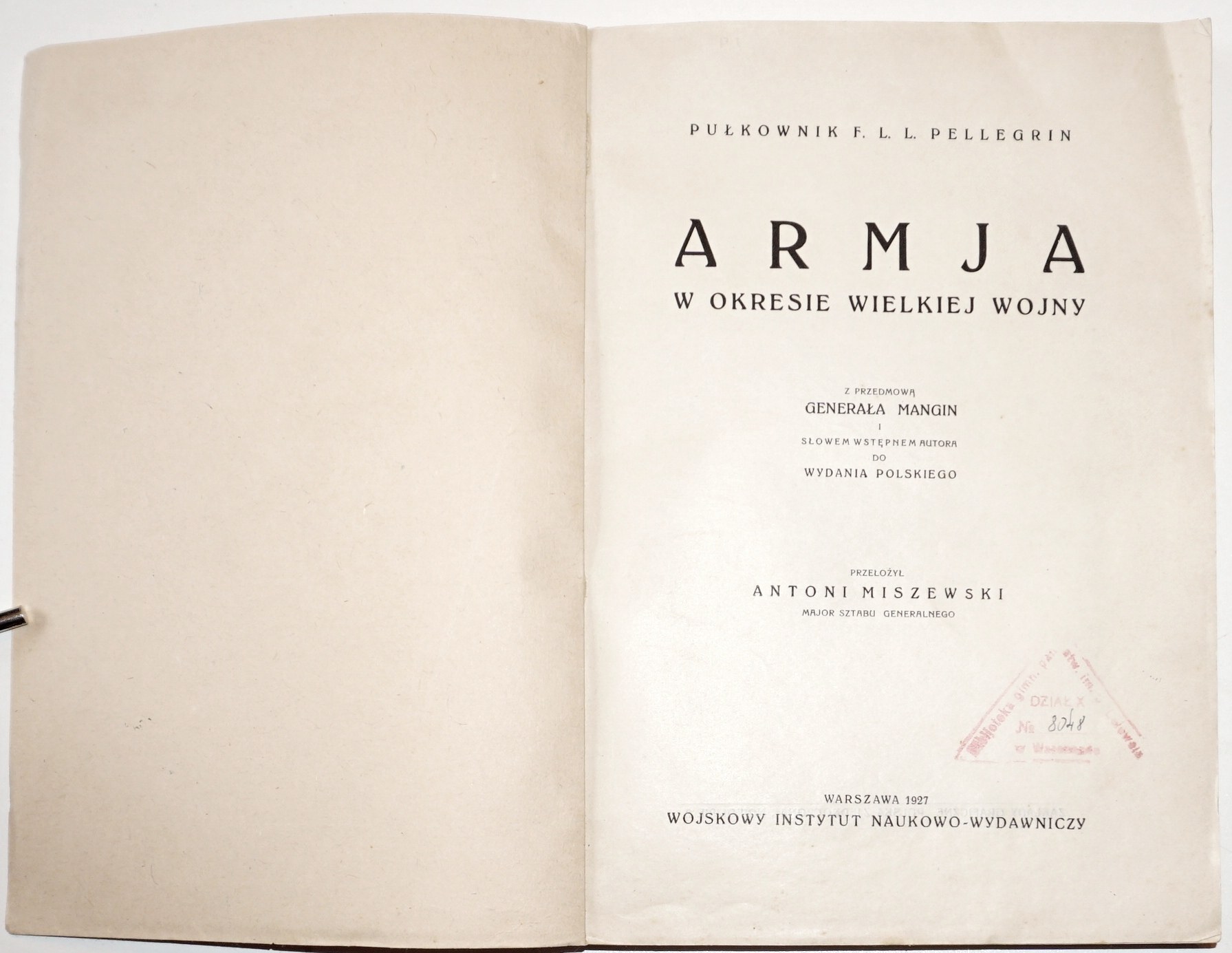 Armja w okresie wielkiej wojny / F. L. L. Pellegrin ; z przedm. Mangin i słowem wstępnem aut. do wyd. pol. ; przeł. Antoni Miszewski.