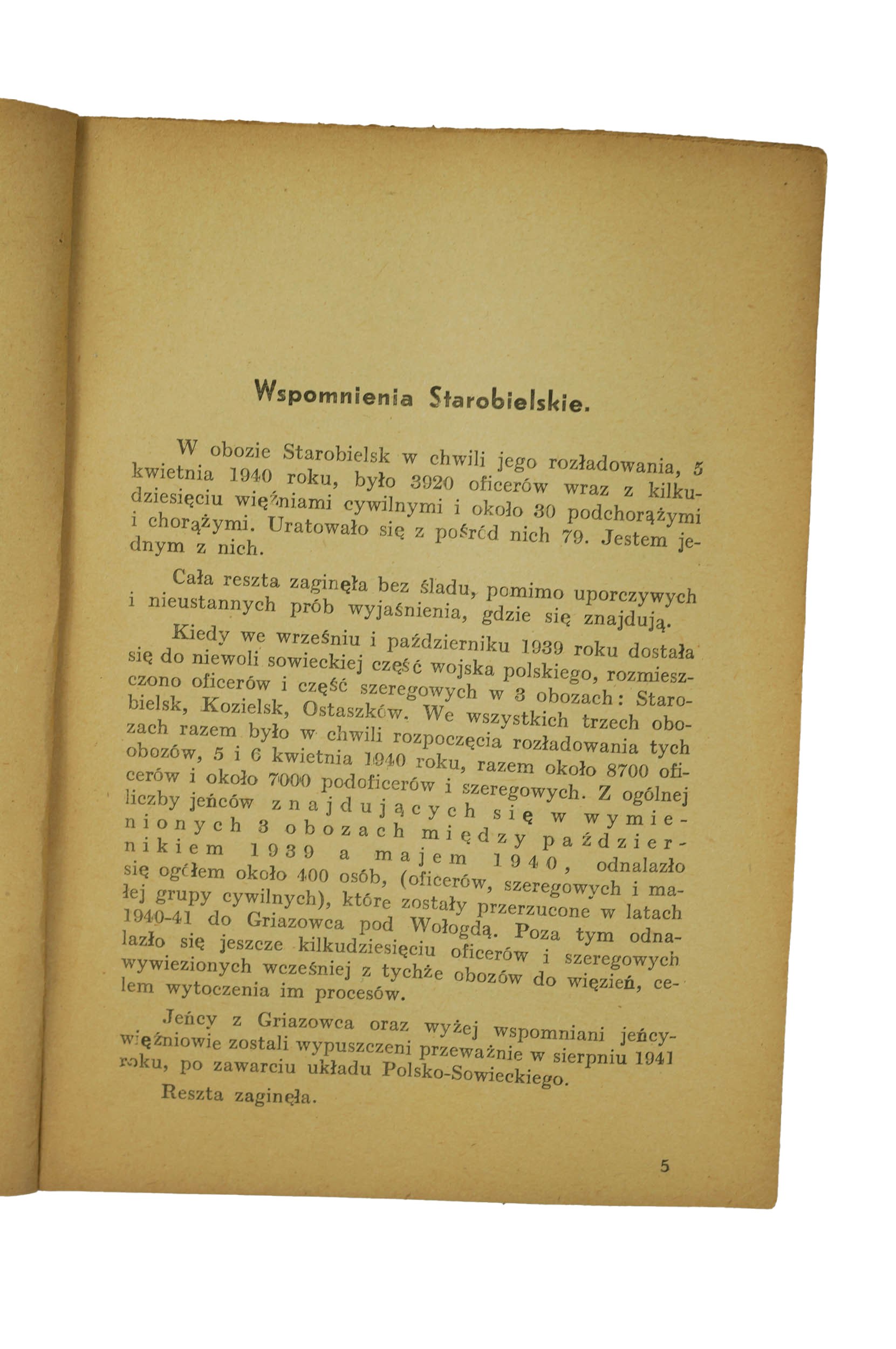 Wspomnienia starobielskie - Józef Czapski, 1945r. wydanie drugie, tłoczono w Drukarni Polowej, nakład Oddziału Kultury i Prasy 2 Korpusu, f. 12x17cm, s. 62, [1], RZADKIE