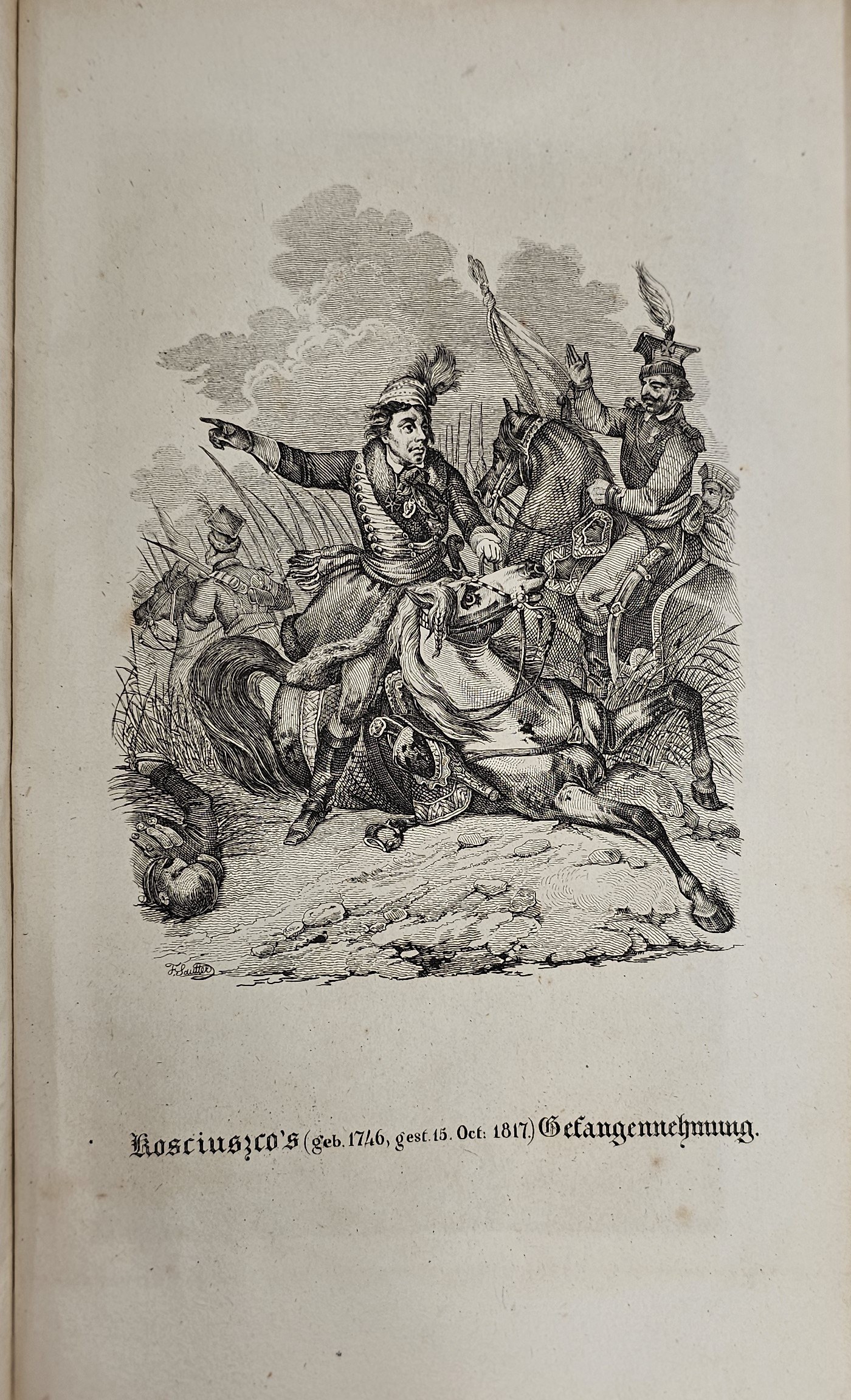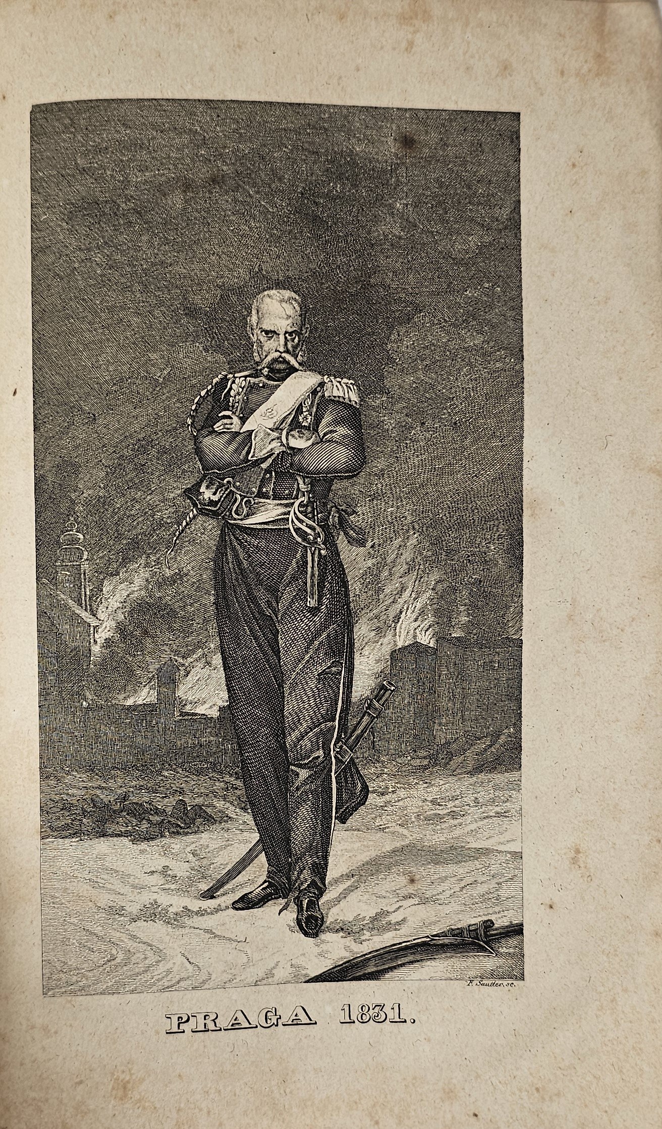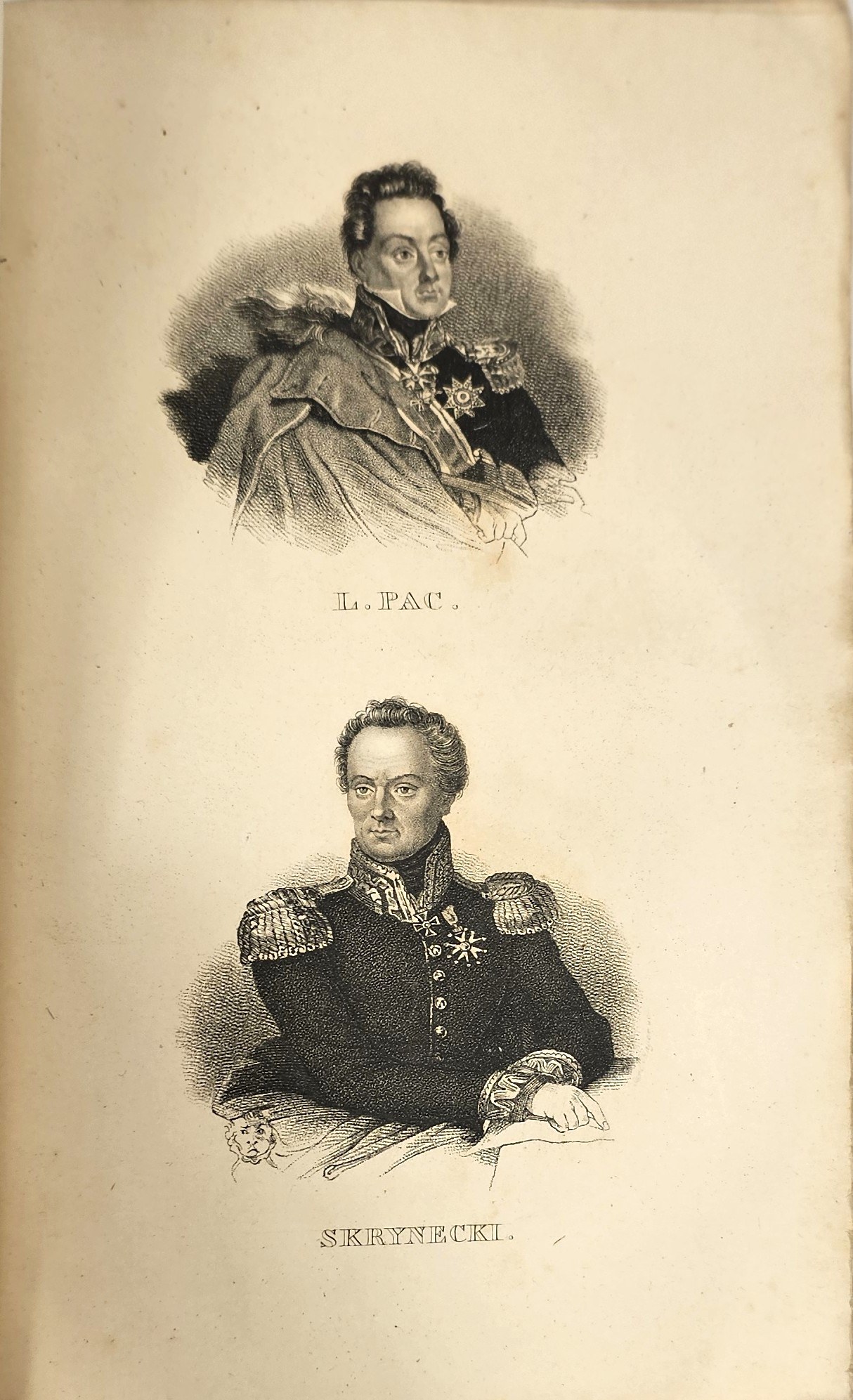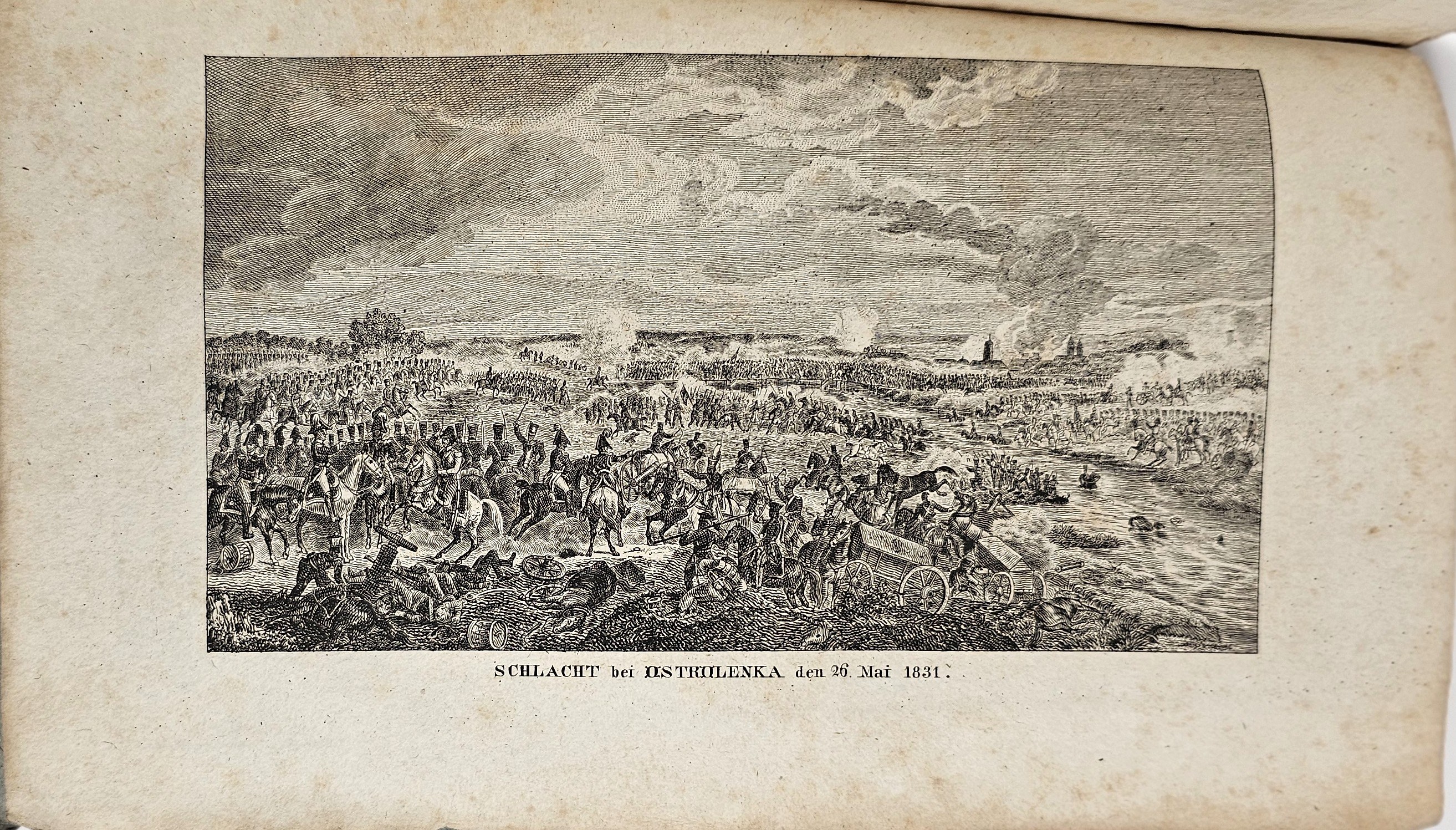 Tłum. z j. franc. oraz uzupełnił krótkimi notatkami geograficzno-statystycznymi o Polsce i jej mieszkańcach Heinrich Elsner. 21.5 cm, s. 112; 113-224, 4 tab. miedzioryty: w tym k. tytuł.; [1], 225-328; 96; 97-192; 193-288; [1], 289-344, 8 tab. miedzioryty, Siedem zeszytów: okładki oryg. wydawnicze, każda opatrzona winietą. Z. 1 z rdzawymi plamkami na okł., pozostałe okładki czyste. Strony w poszczególnych częściach miejscami zabrązowione mimo to stan bardzo dobry. Rzadko spotykany na rynku antykwarycznym przykład zeszytowego wydania Historii Polski okresu powstania listopadowego Sołtyka przeznaczony do oprawy.