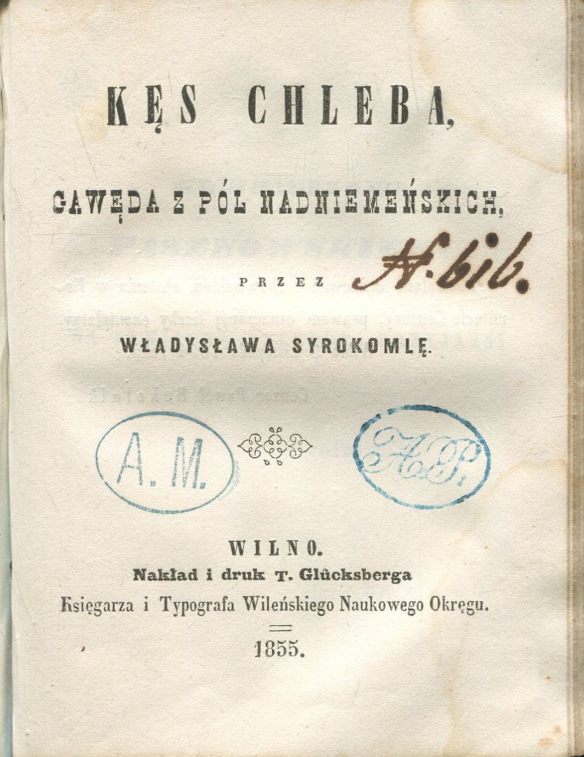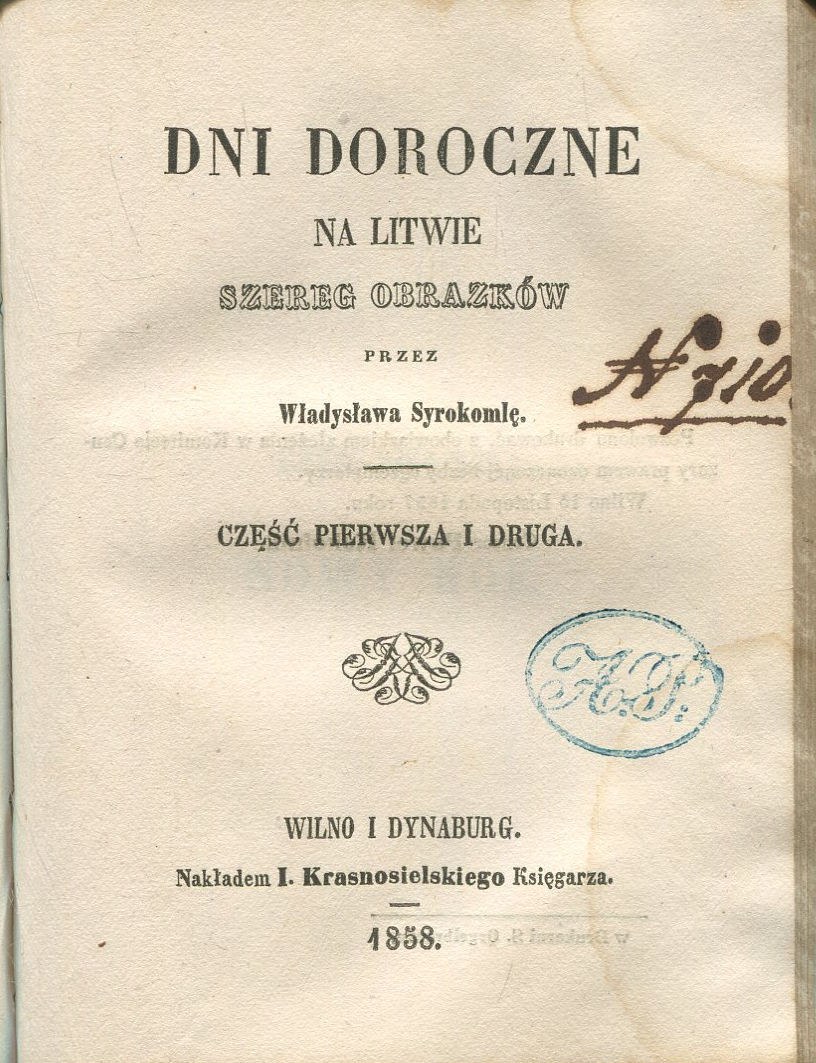 Zbiór pierwszych wydań pięciu utworów Władysława Syrokomli, wł. Ludwika Kondratowicza (1823-1862), poety posługującego się ironicznym spojrzeniem na rzeczywistość, szczególnie na mentalność i zwyczaje drobnej szlachty. Reprezentując romantyzm z wyraźnymi wpływami realizmu, używał prostego i barwnego języka, często zaczerpniętego z folkloru oraz tradycji polskiej wsi.