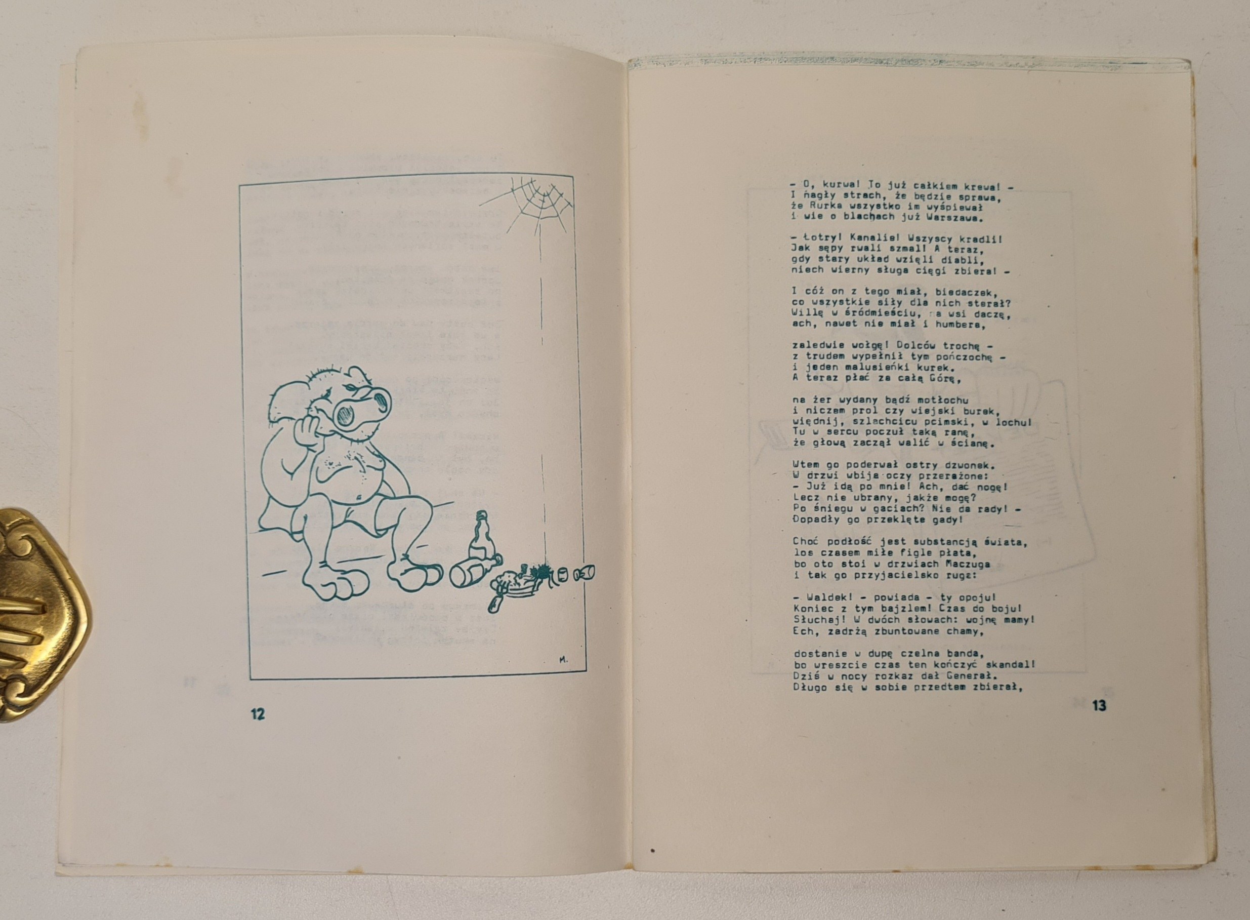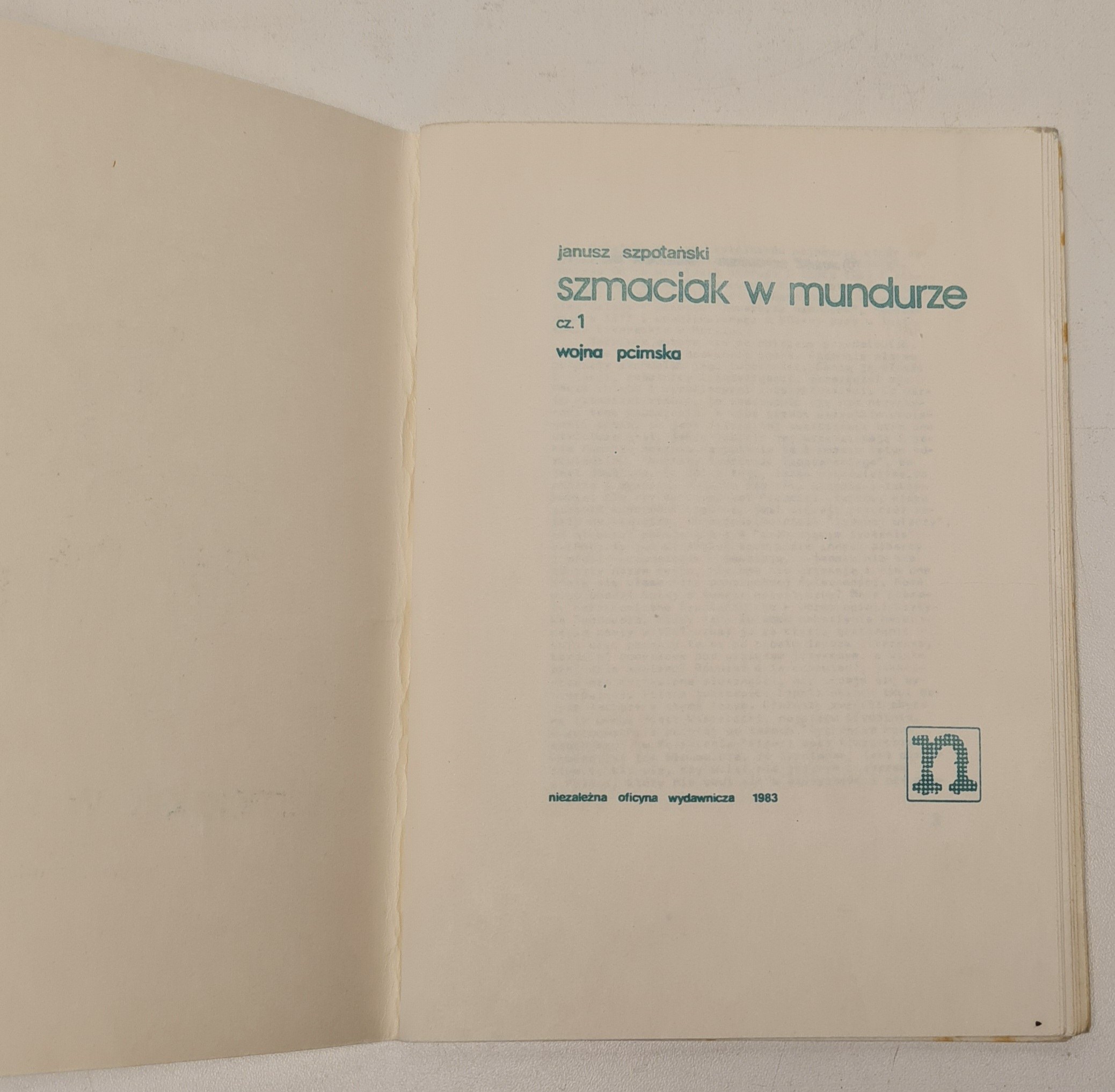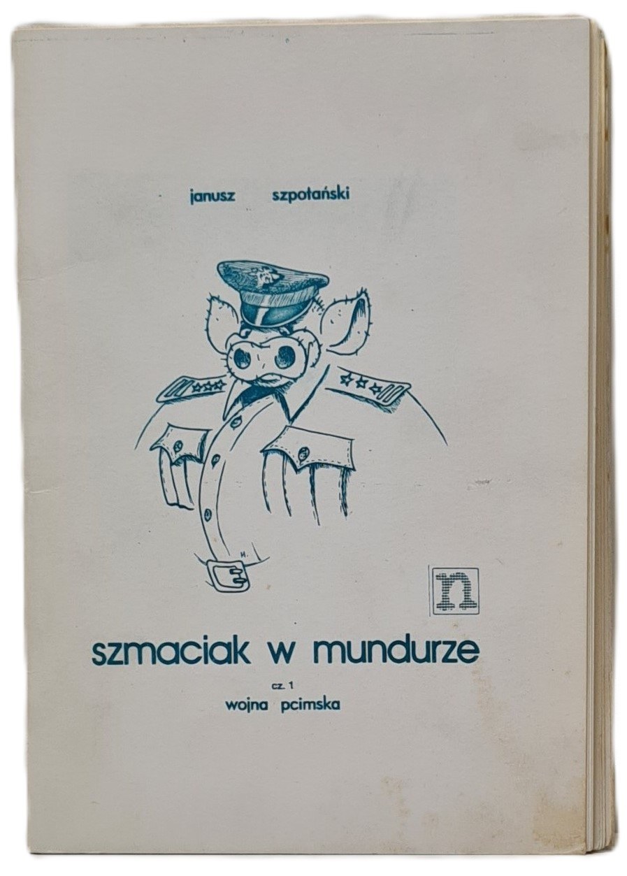 Szpotański Janusz - Szmaciak w mundurze, część I wojna pcimska, Warszawa 1983. Niezależna Oficyna Wydawnicza, wym. 14,5 x 21cm, s. 43. Oprawa broszurowa. Stan bardzo dobry, niewielkie zabrudzenia okładki.