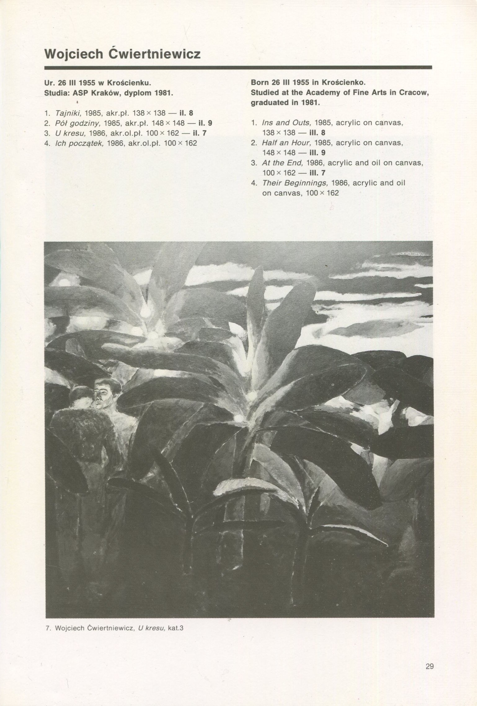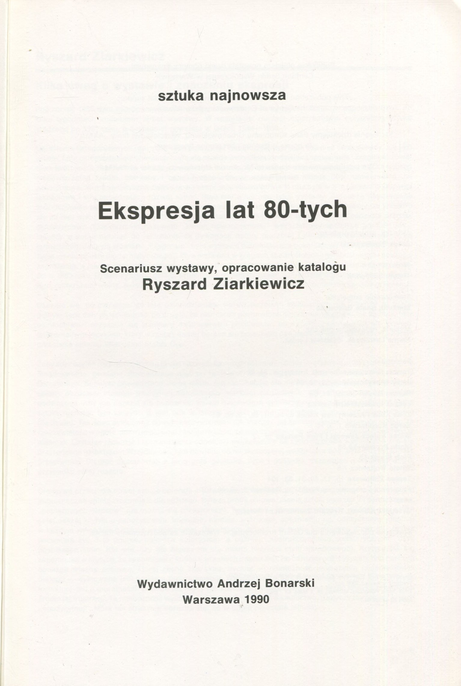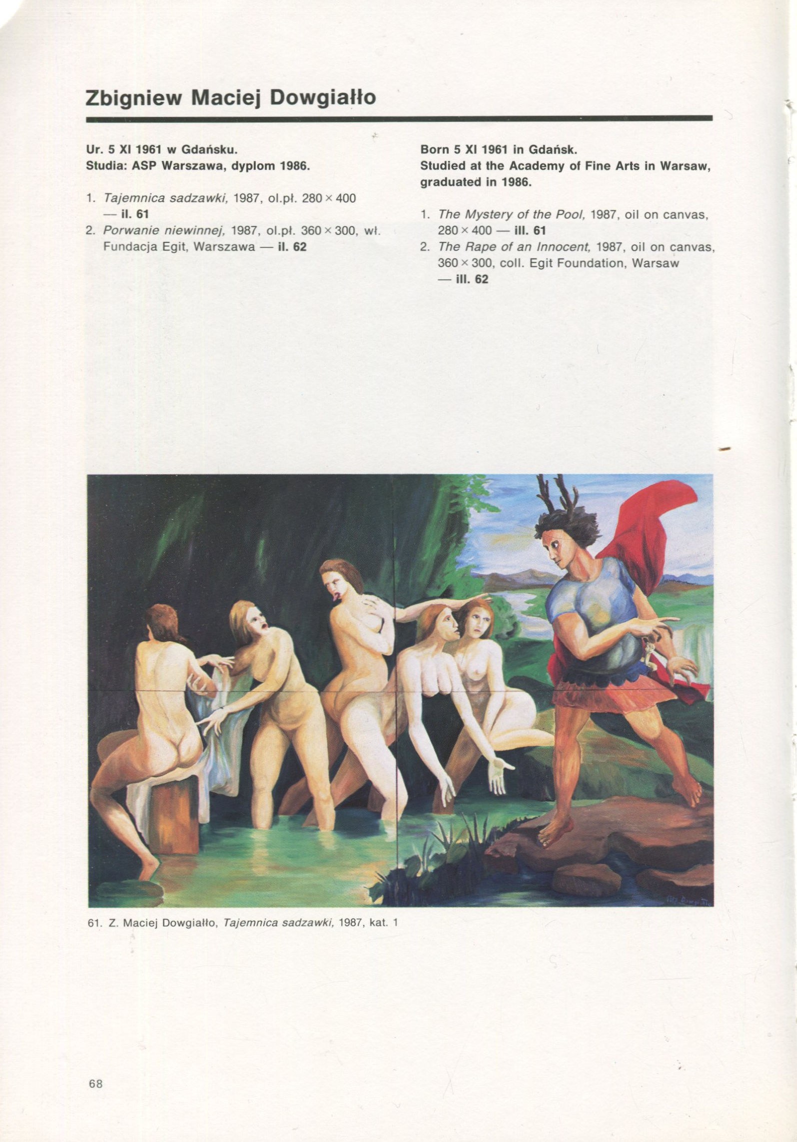 Wystawa odbyła się w dniach 14 grudnia 1987-31 stycznia 1988 w Muzeum Narodowym w Warszawie. Katalog zawiera kolorowe reprodukcje obrazów m.in. następujących artystów: Edward Dwurnik, Eugeniusz Mucha, Leon Tarasewicz, Krzysztof Bednarski, Andrzej Bielawski.