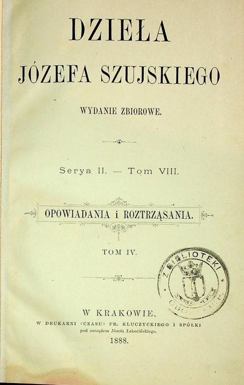 SZUJSKI Józef - DZIEŁA Serya II. - Tom VIII. OPOWIADANIA I ROZTRZĄSANIA.