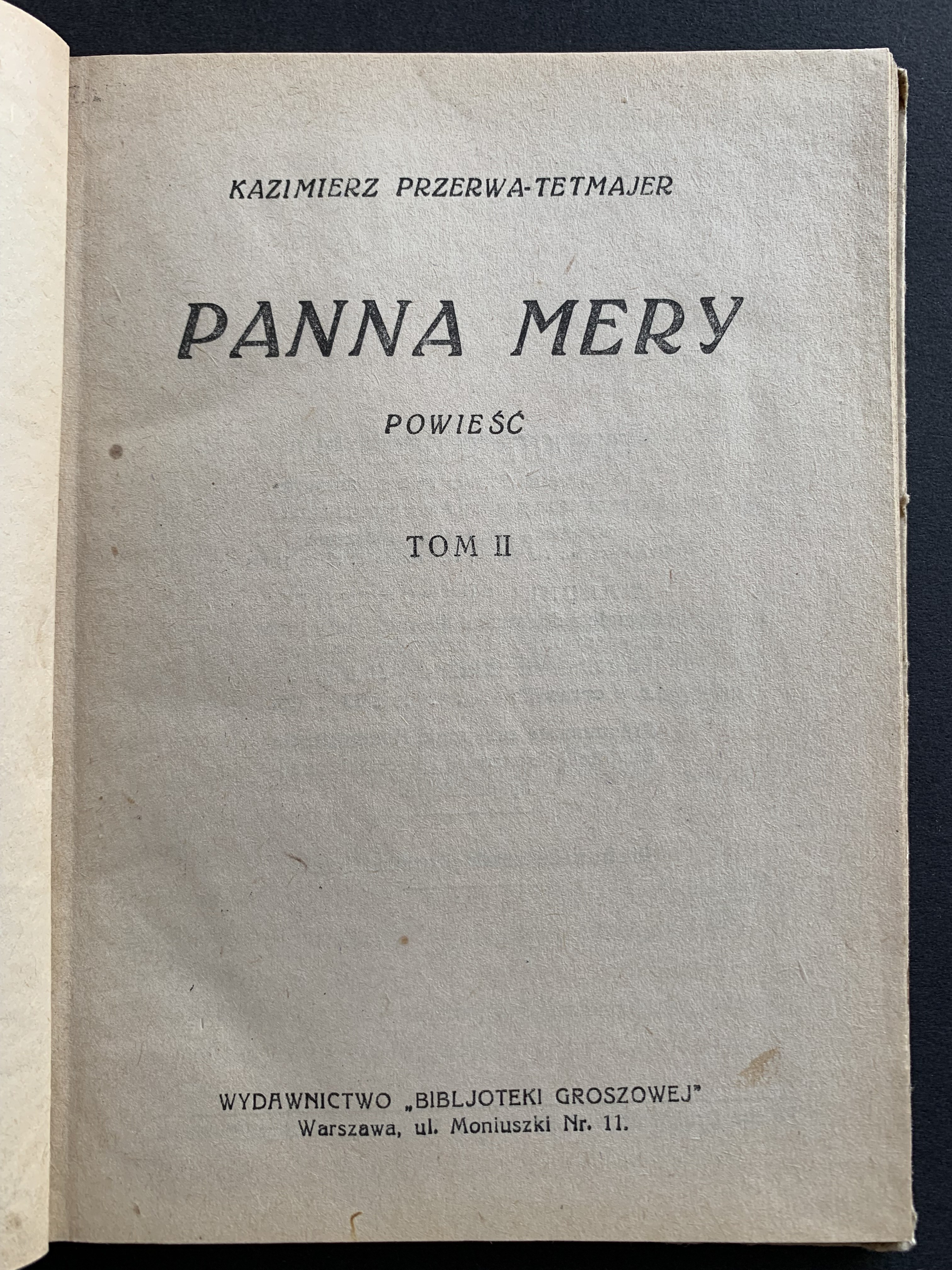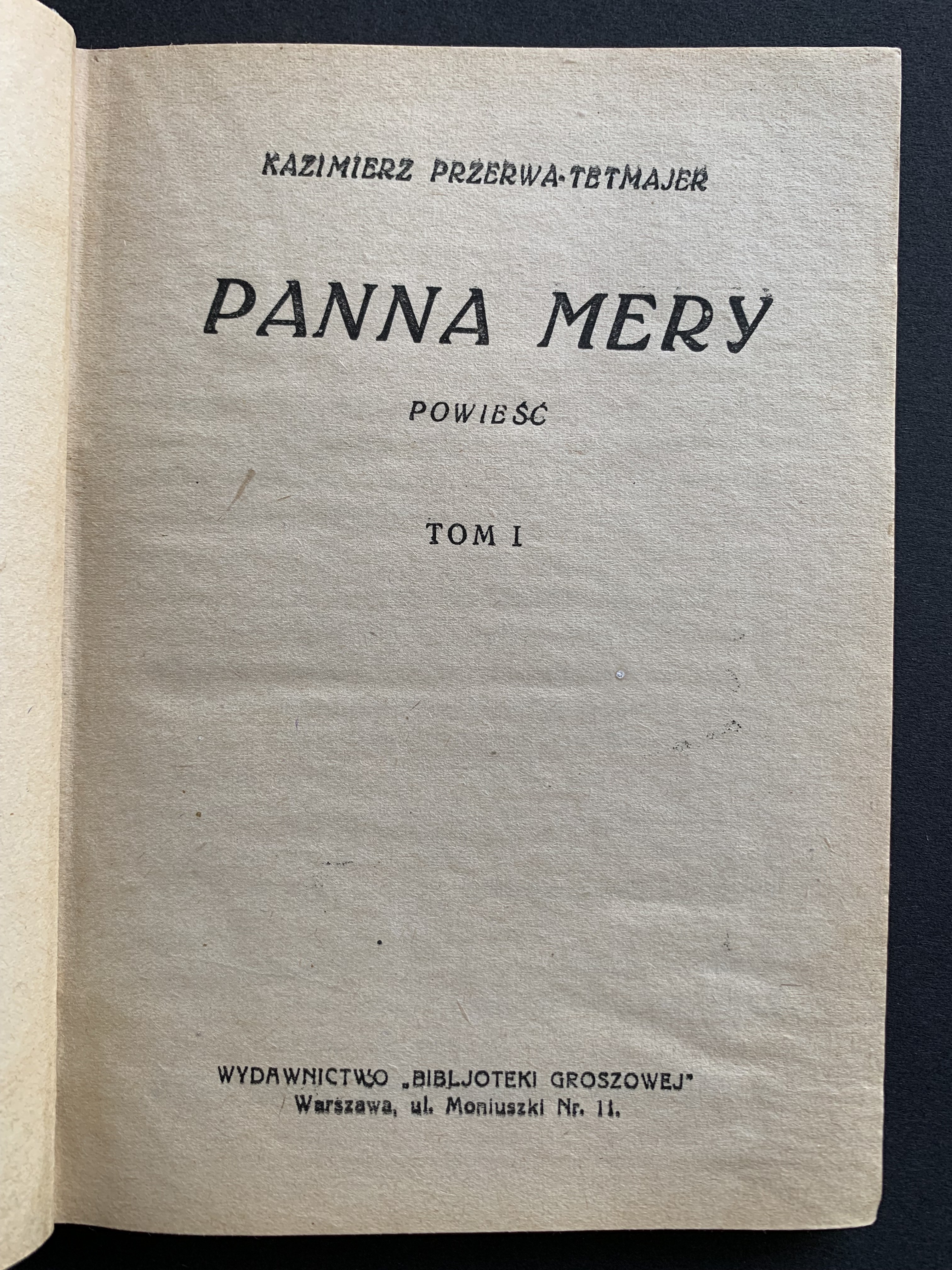 TETMAJER Kazimierz Przerwa - Panna Mery. Powieść. Tom I-II. Warszawa [1927]. Bibljoteka Groszowa.