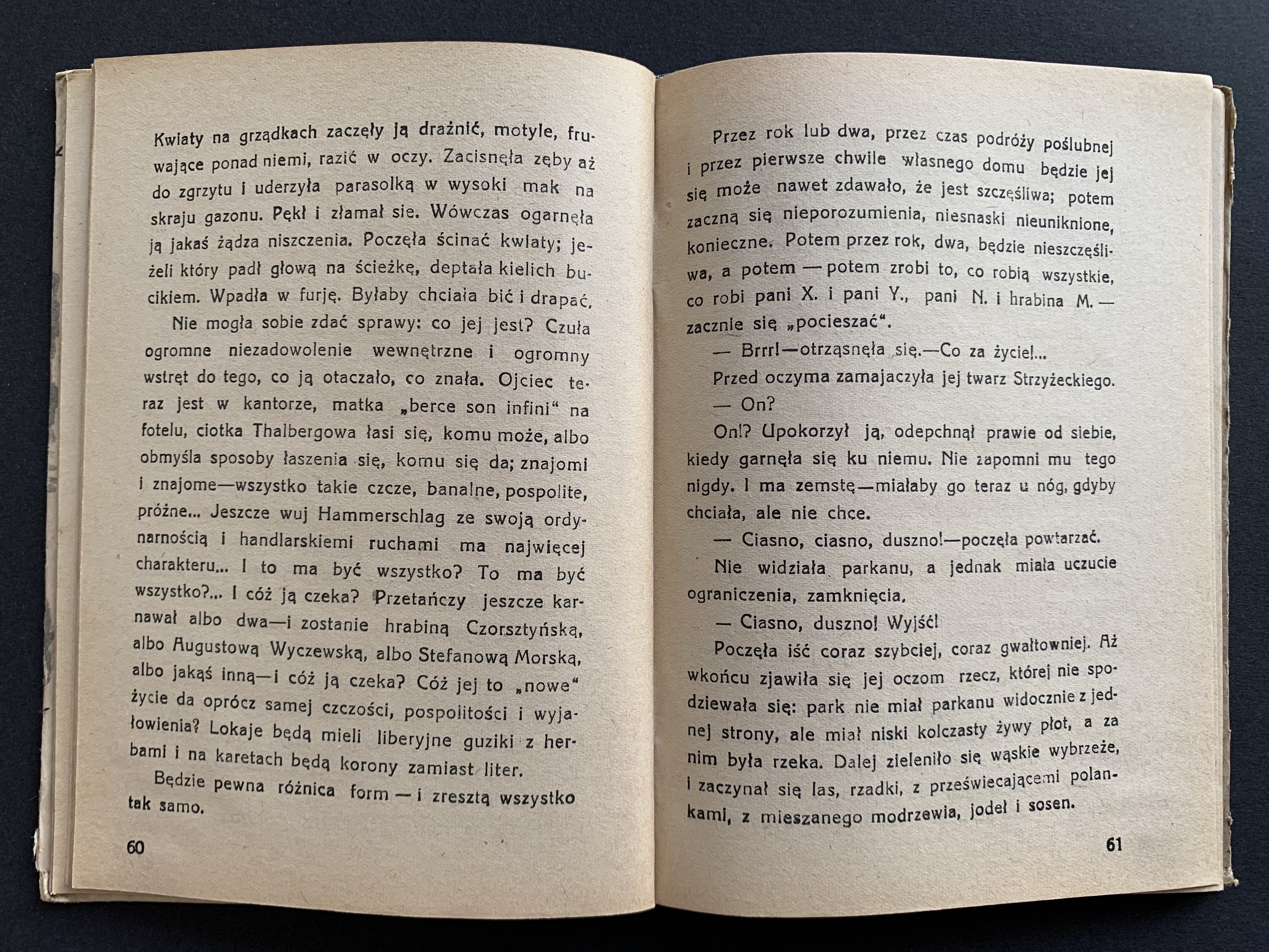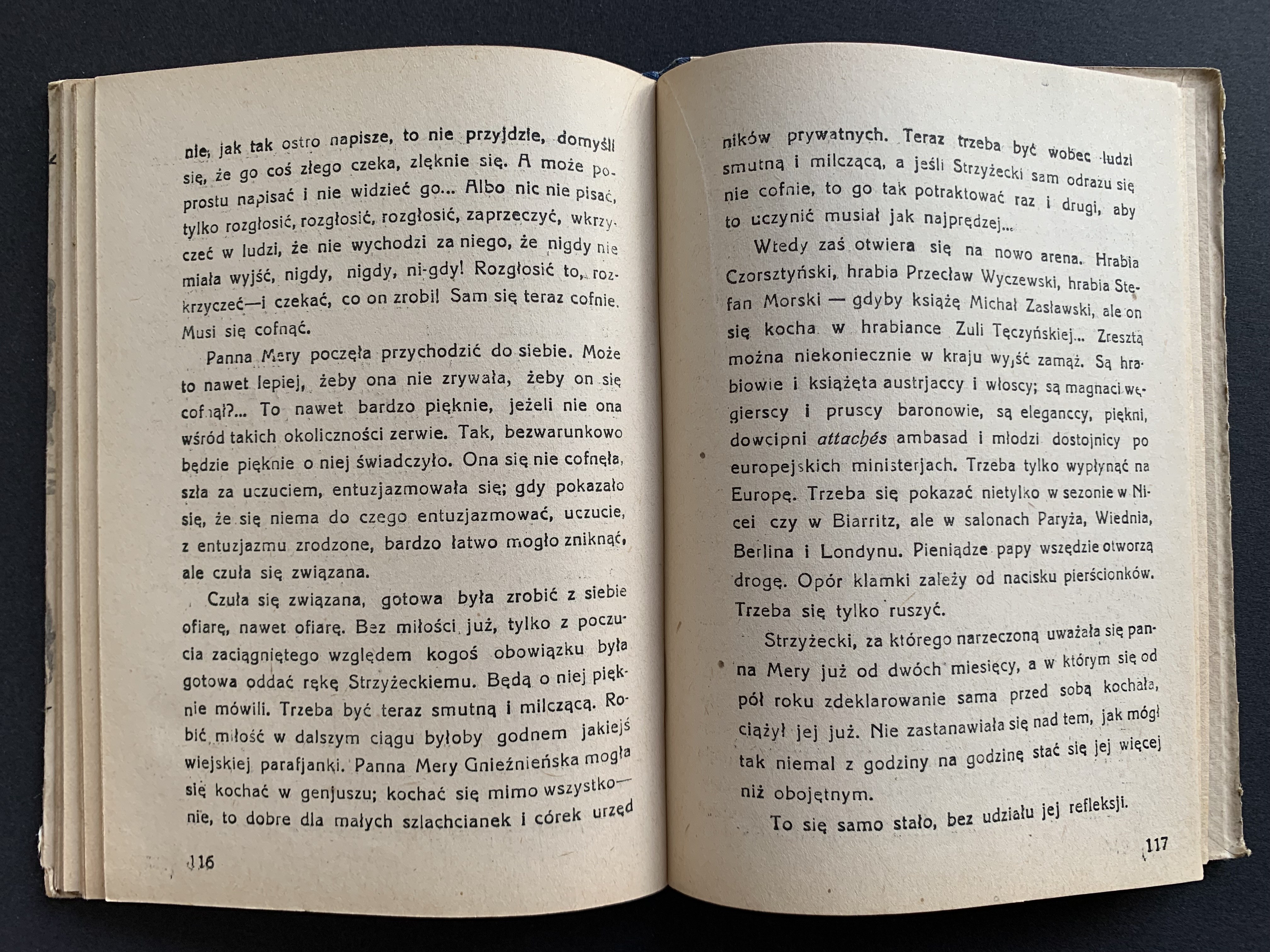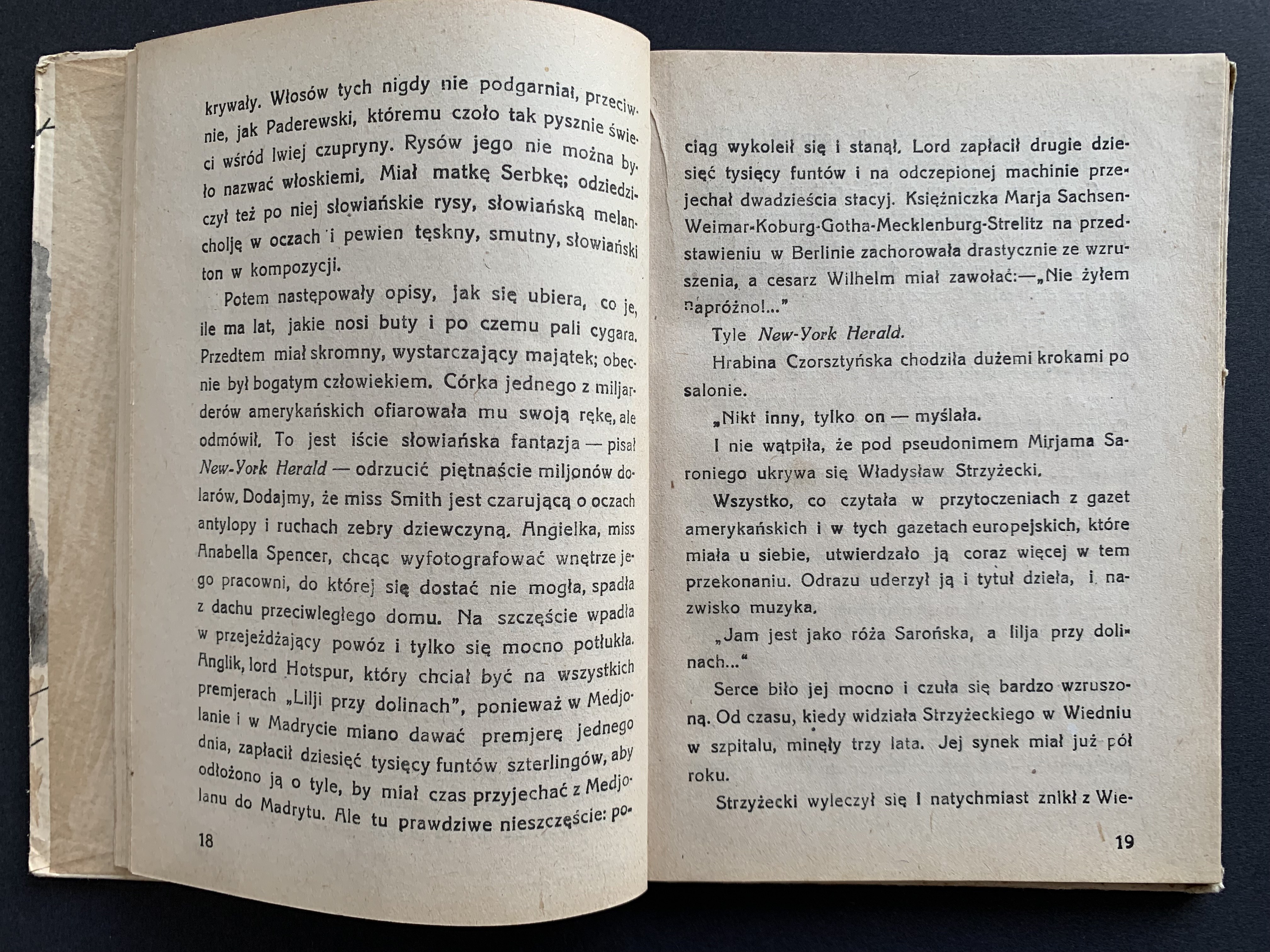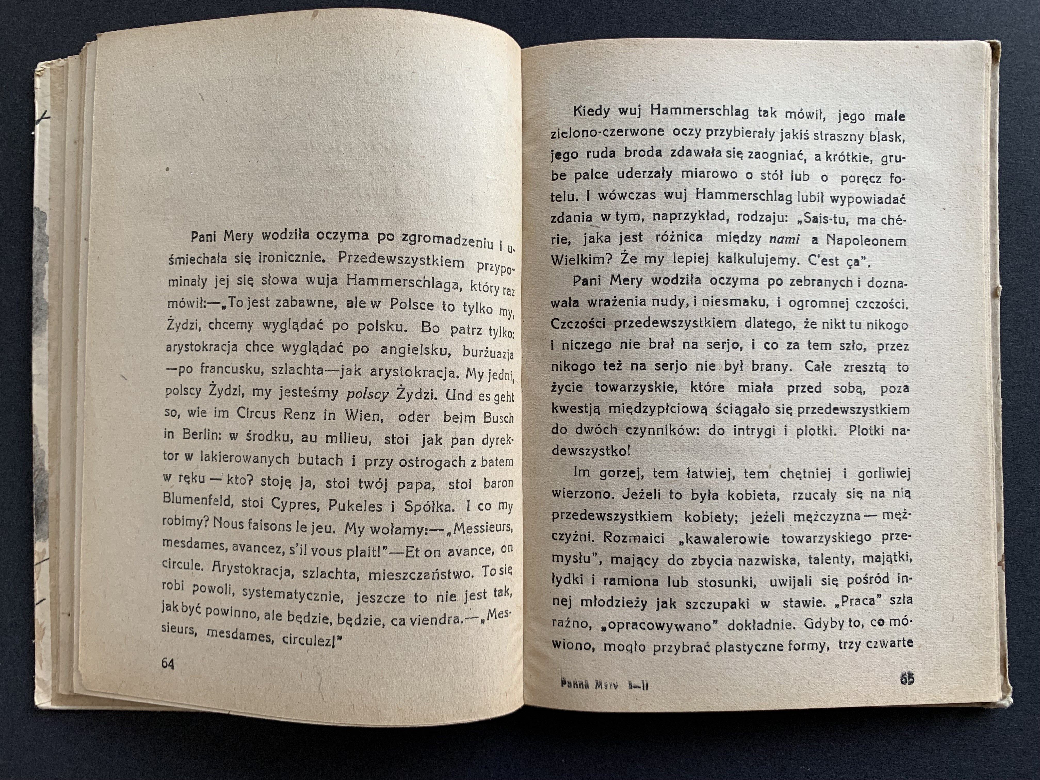 [Wydanie 1 - 1901] "Miljonerka żydowska, nimfomanka, wychodzi za hrabiego, zdradza go, a wypędzona przez męża, włóczy się po świecie i romansuje jako rozwódka; wstrętna postać" [Lechicki 340].
