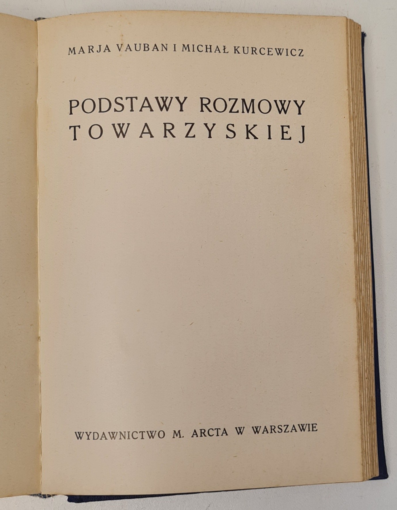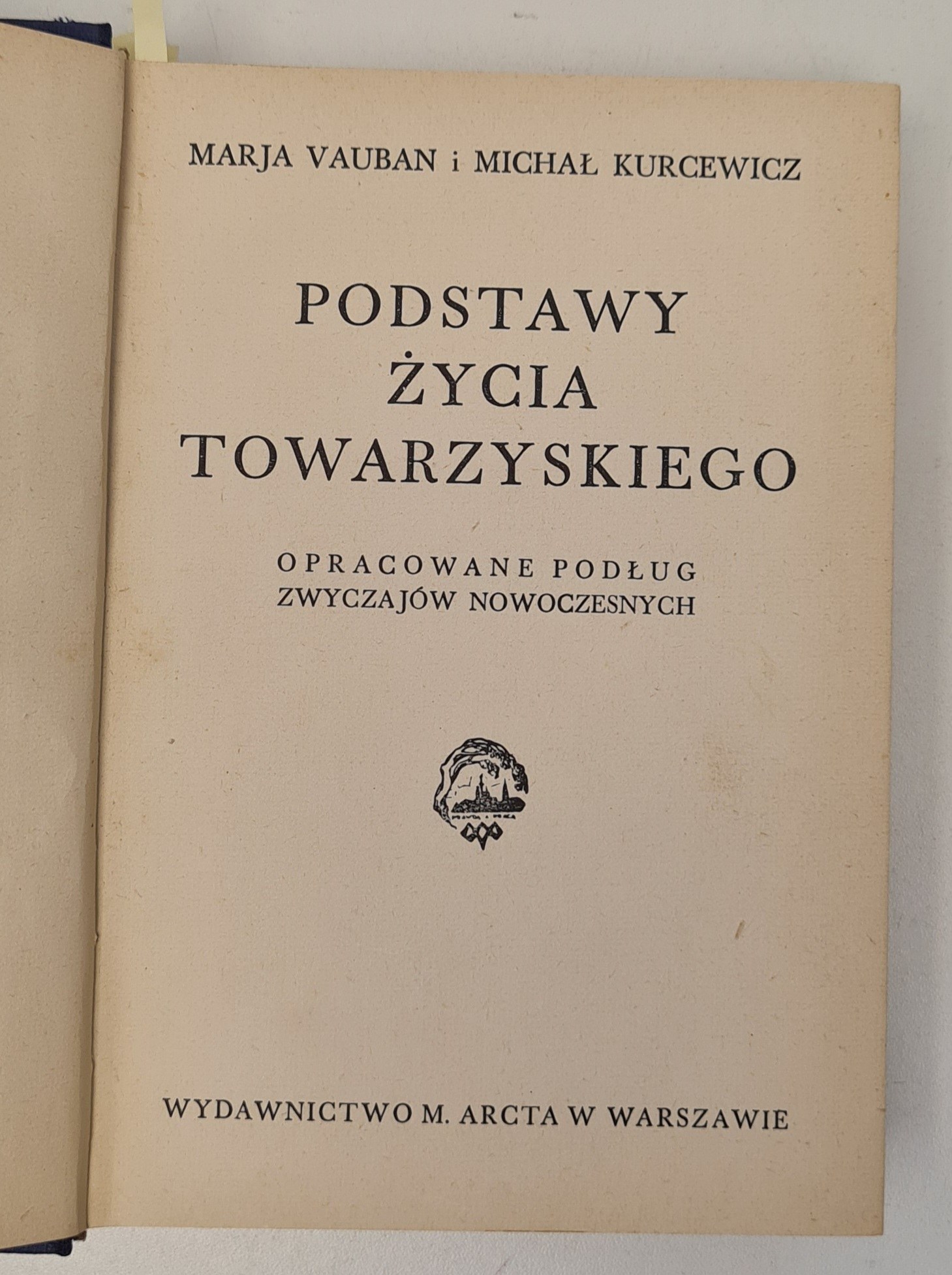 Vauban Marja, Kurcewicz Michał - Podstawy życia towarzyskiego opracowane podług zwyczajów nowoczesnych. Warszawa 1935. Wyd. M. Arcta. 16d, s. 443, [1]. Oprawa oryginalna wydawnicza płótno. Całość w bardzo dobrym stanie.