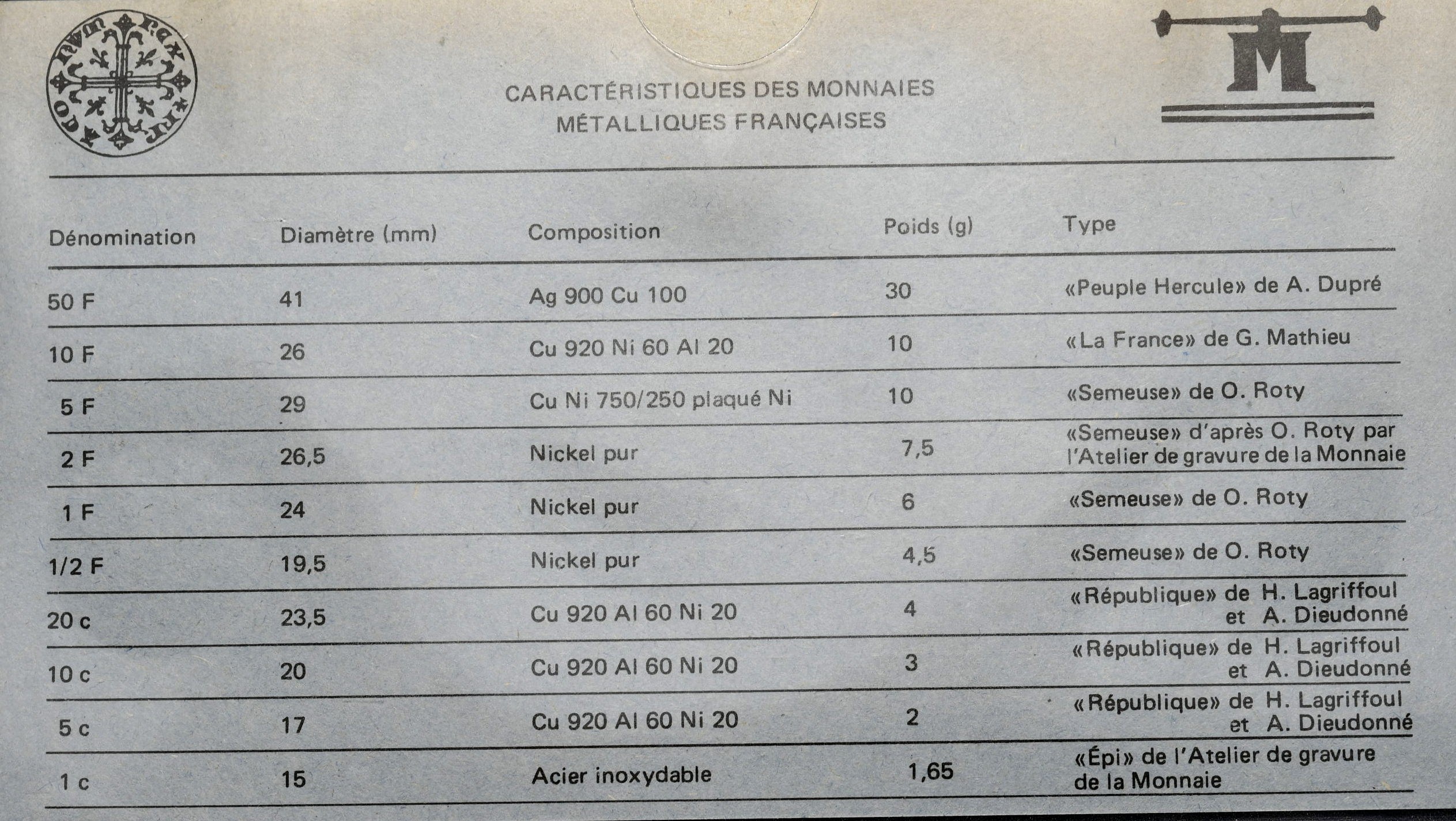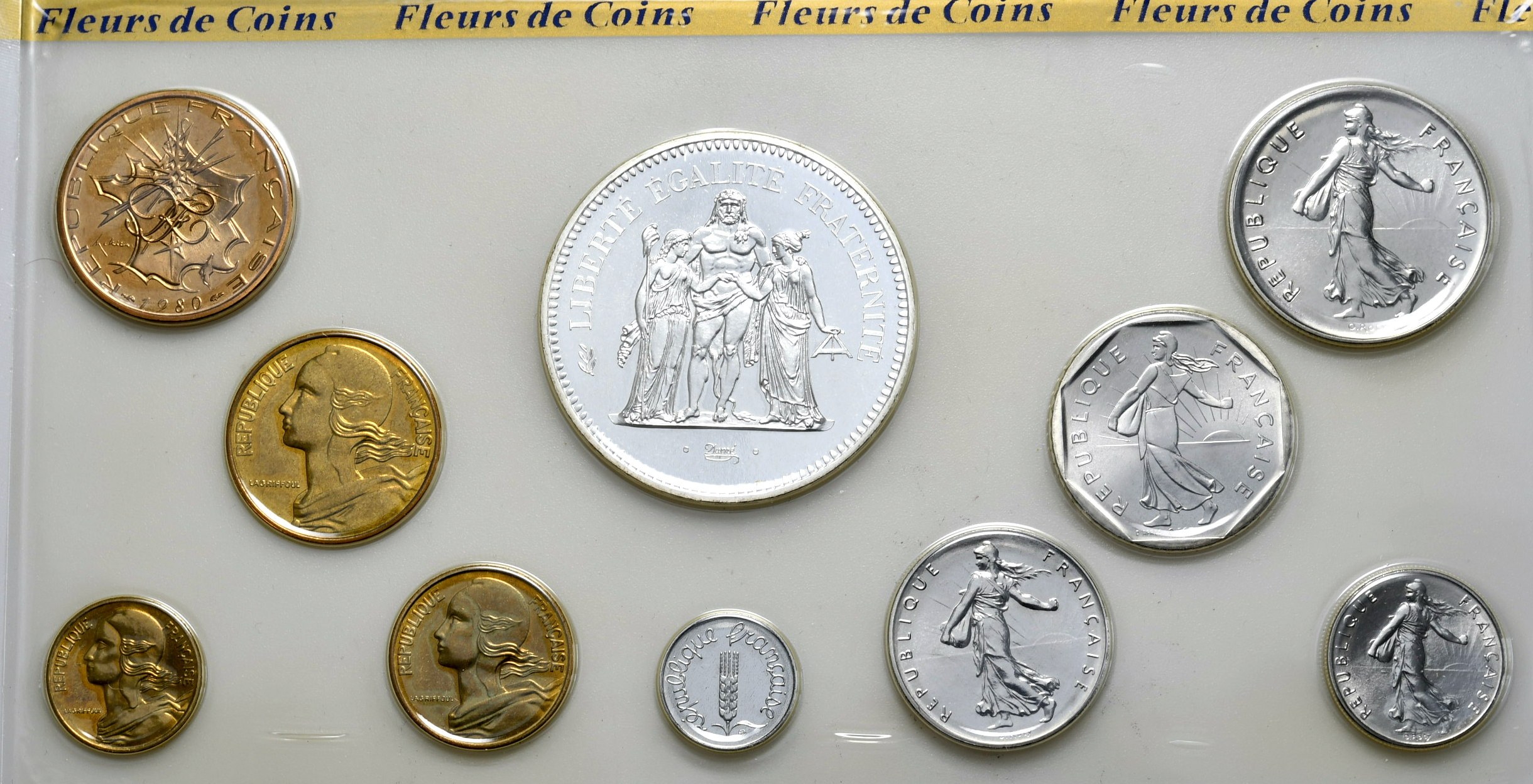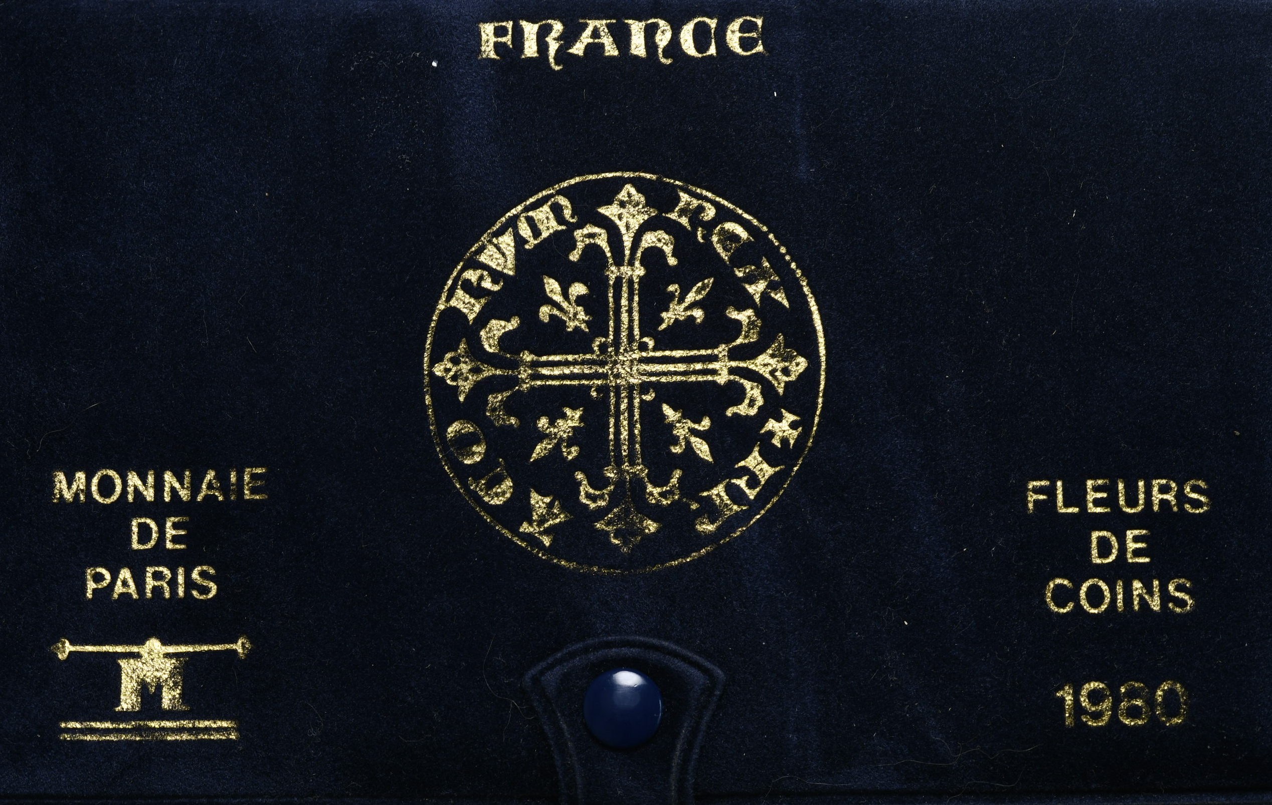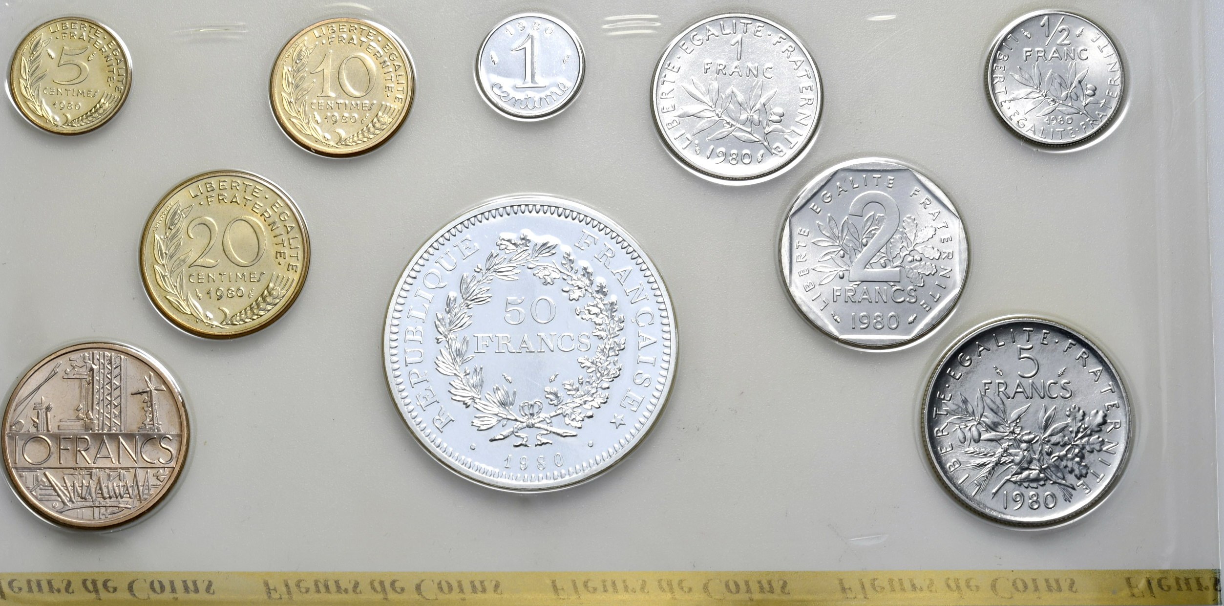 Zestaw rocznikowy 1980 od 1 centime do 50 Franków, Herkules. W oryginalnym blistrze, z certyfikatem.
