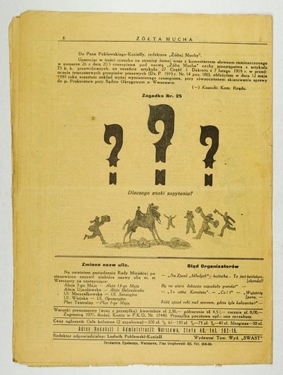ŻÓŁTA Mucha Tse-Tse. Warszawa. Tow. Wyd. "Swast". Red. L. Poklewski-Koziełł [i in.]. 4. numery luzem.