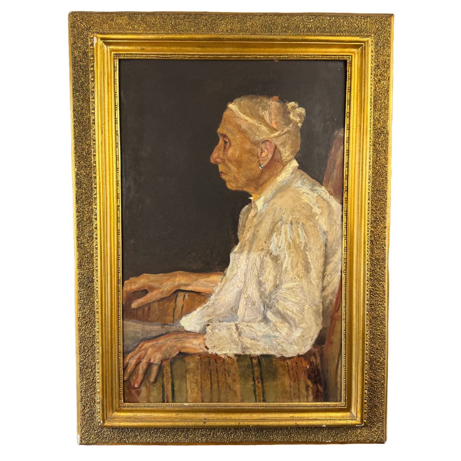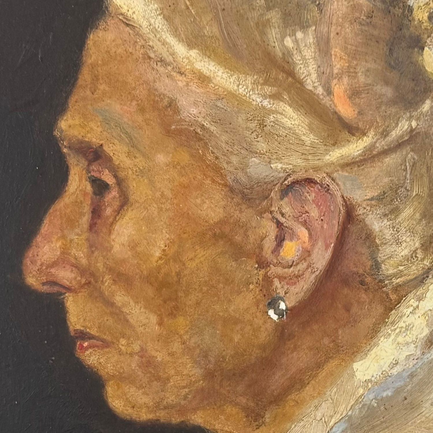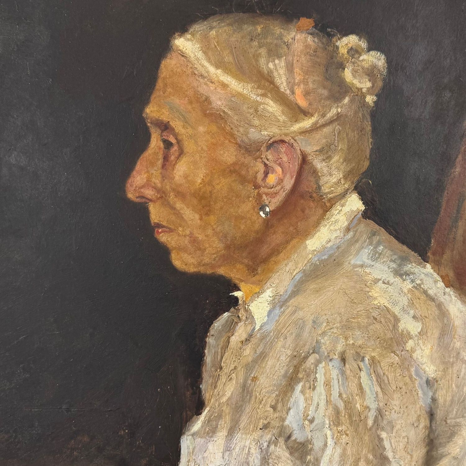 Oil painting on cardboard, 20th century, Italian school, depicting a portrait of an elderly woman.