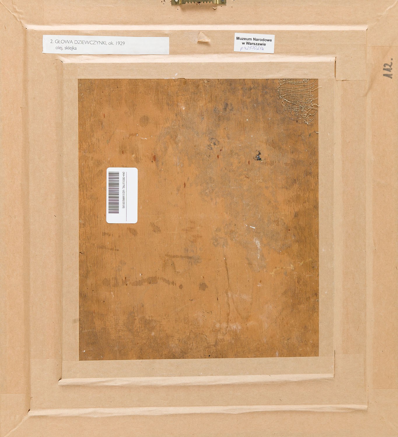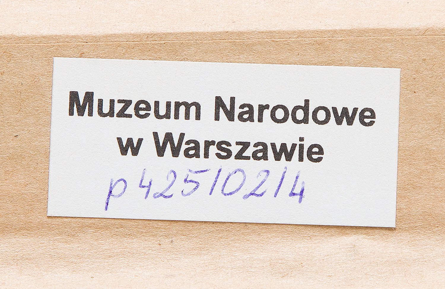 na odwrociu papierowa nalepka depozytowa Muzeum Narodowego w Warszawie