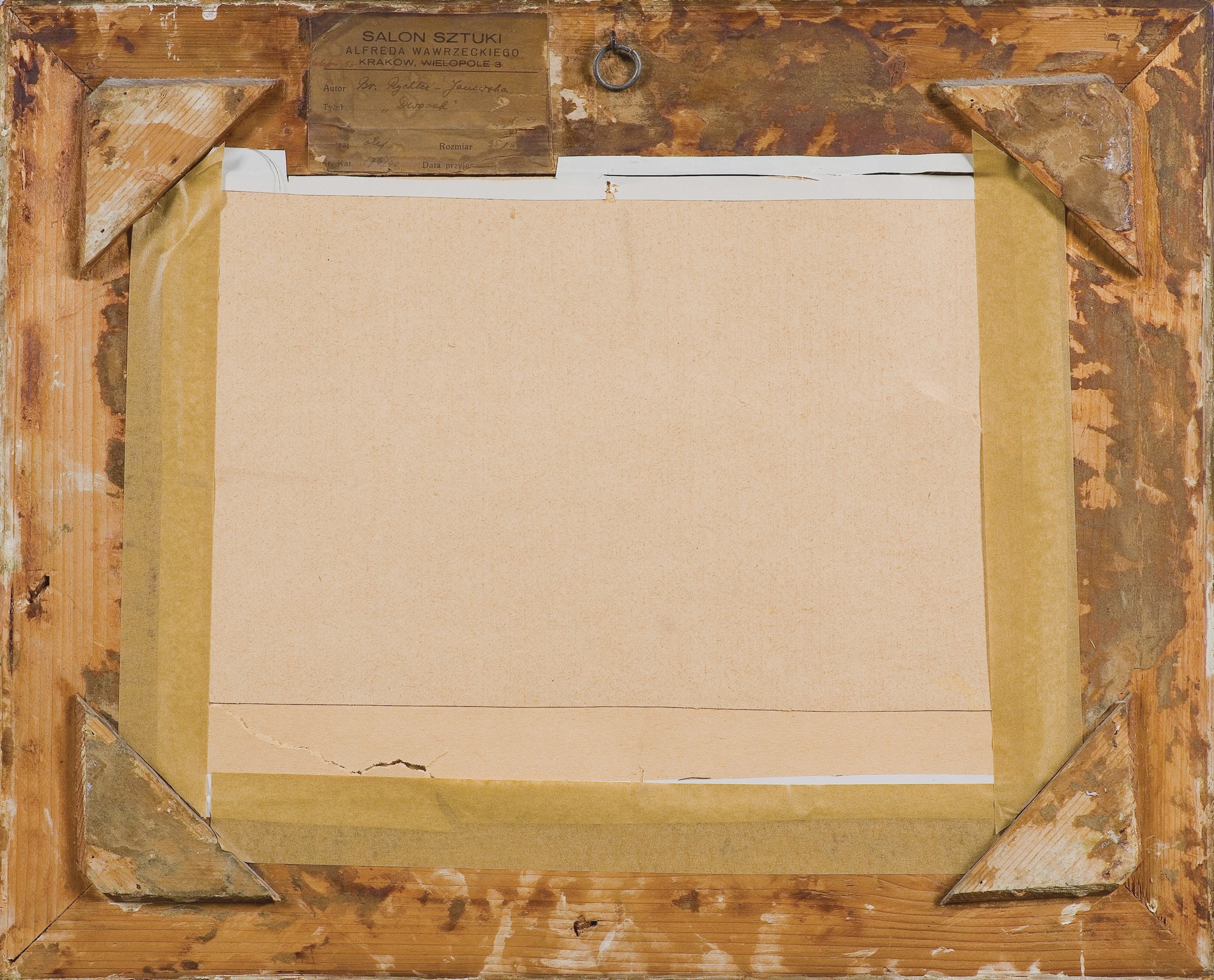 Na górnej listwie ramy nalepka Salonu Sztuki Alfreda Wawrzeckiego w Krakowie.