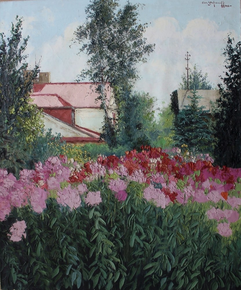 Dom w ogrodzie(1942) sygn.dat.p.g. Chr. Stefanoff / -942-