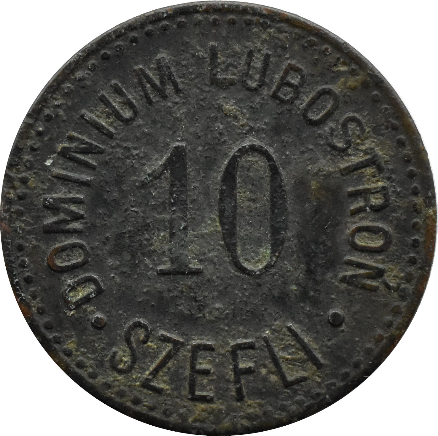 awers: DOMINIUM LUBOSTROŃ.SZEFLI. i w środku cyfra 10, kropki w otoku