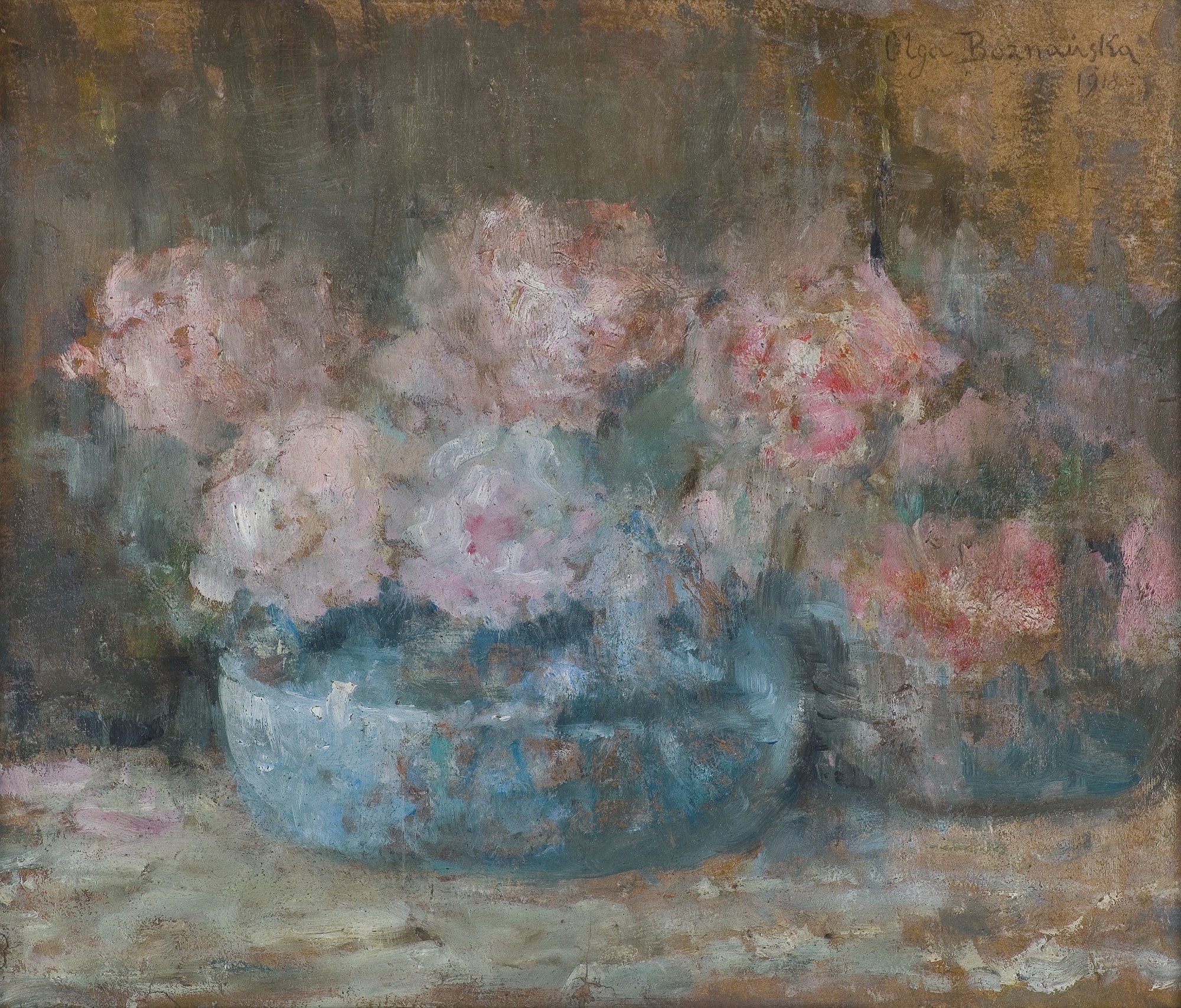 28,2 x 33,6cm - olej, tektura sygn. p.g. (ołówkiem): Olga Boznańska | 1918