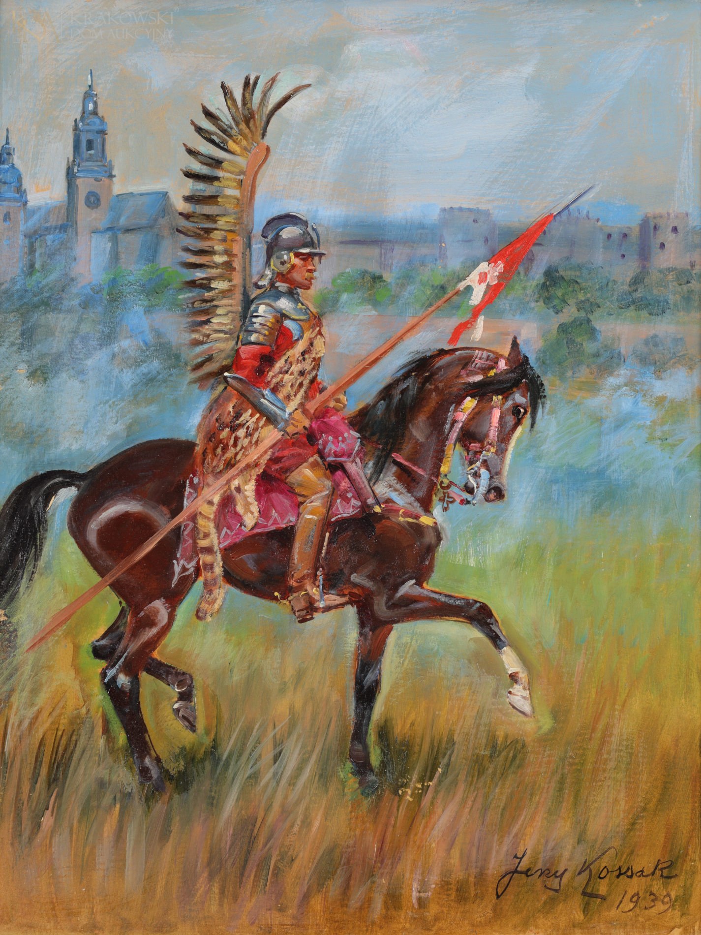 Jerzy KOSSAK (1886-1955), "Husarz na tle Wawelu" (1939)