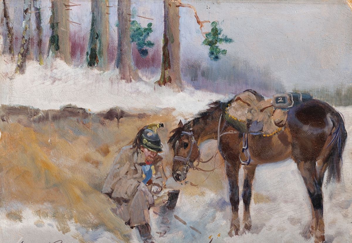 KIRASJER NAPOLEOŃSKI PRZY OGNISKU, 1942