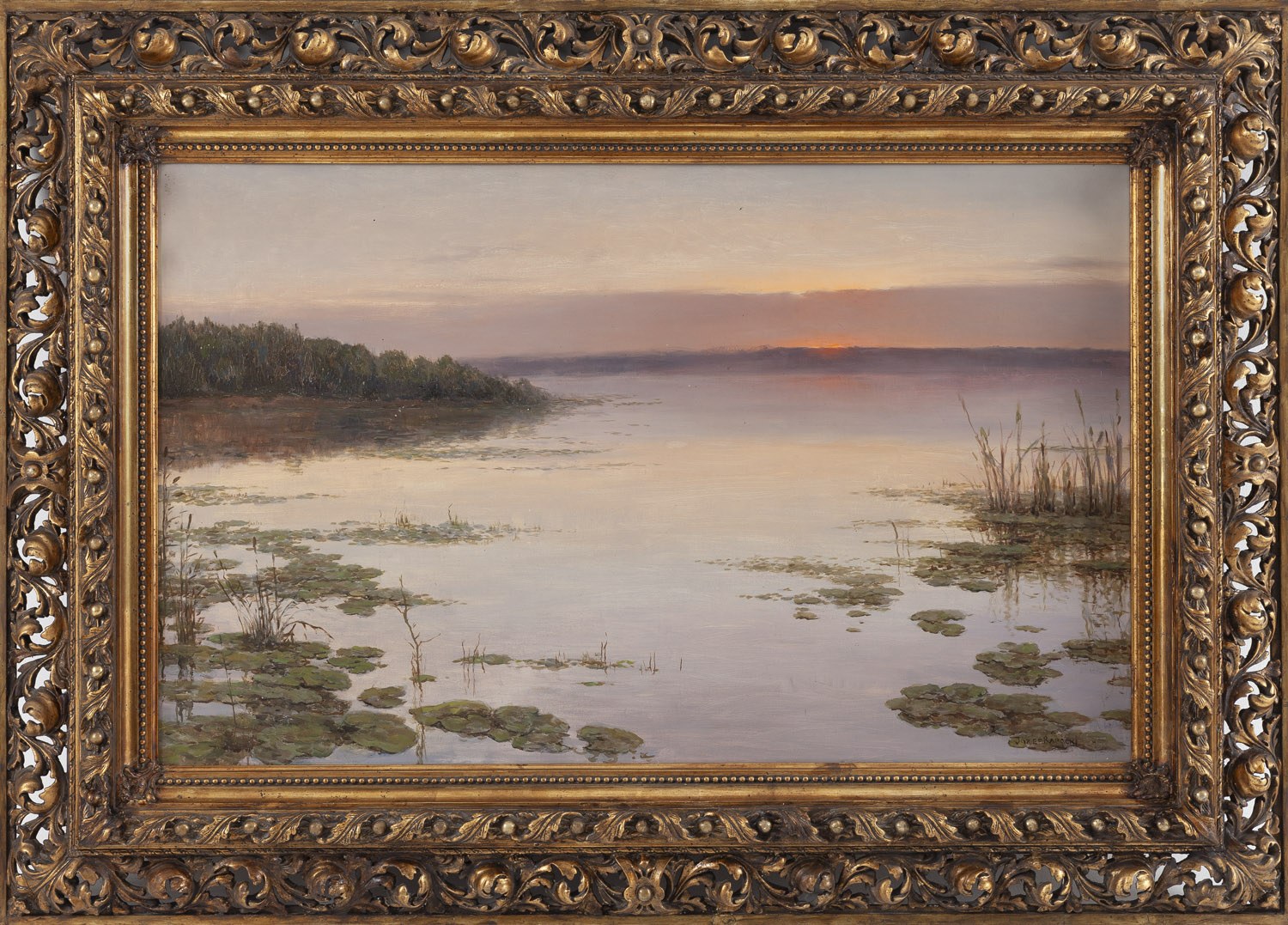 porównaj: pocztówka z reprodukcją analogicznej kompozycji "Staw wieczorem", Dom Wydawniczy A. Chlebowski, p. f. "Świt", Warszawa, ok. 1925