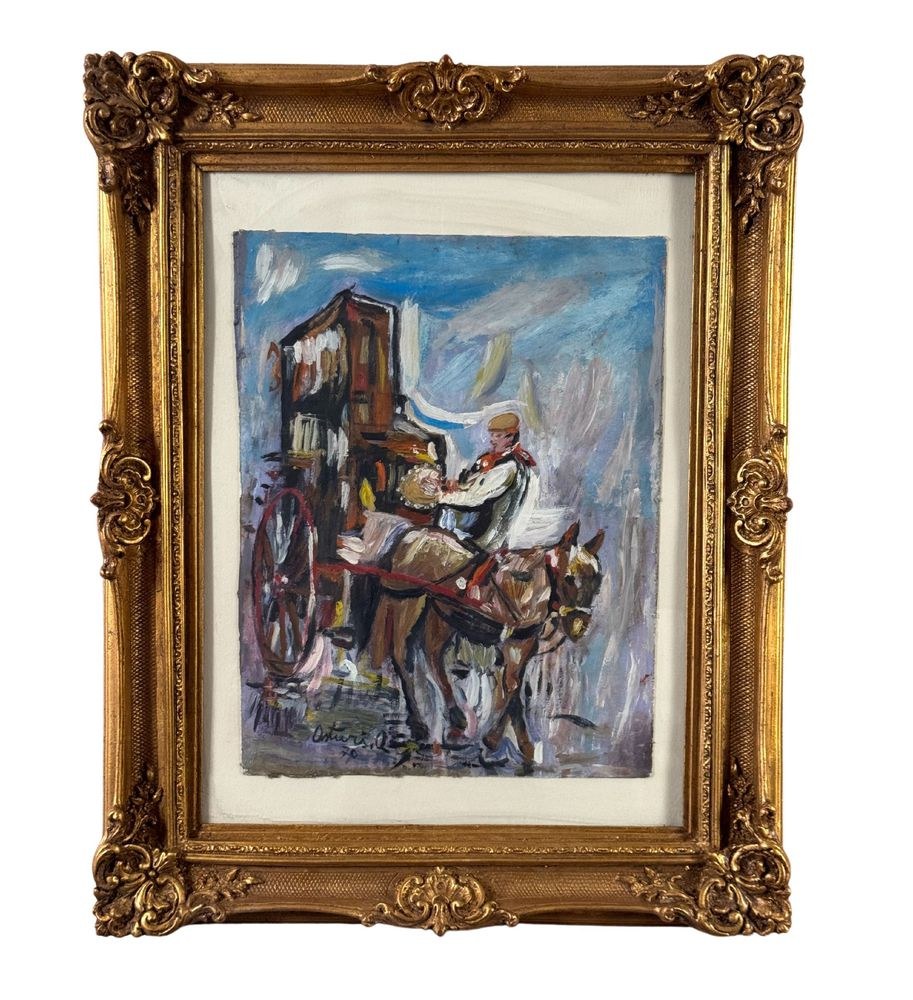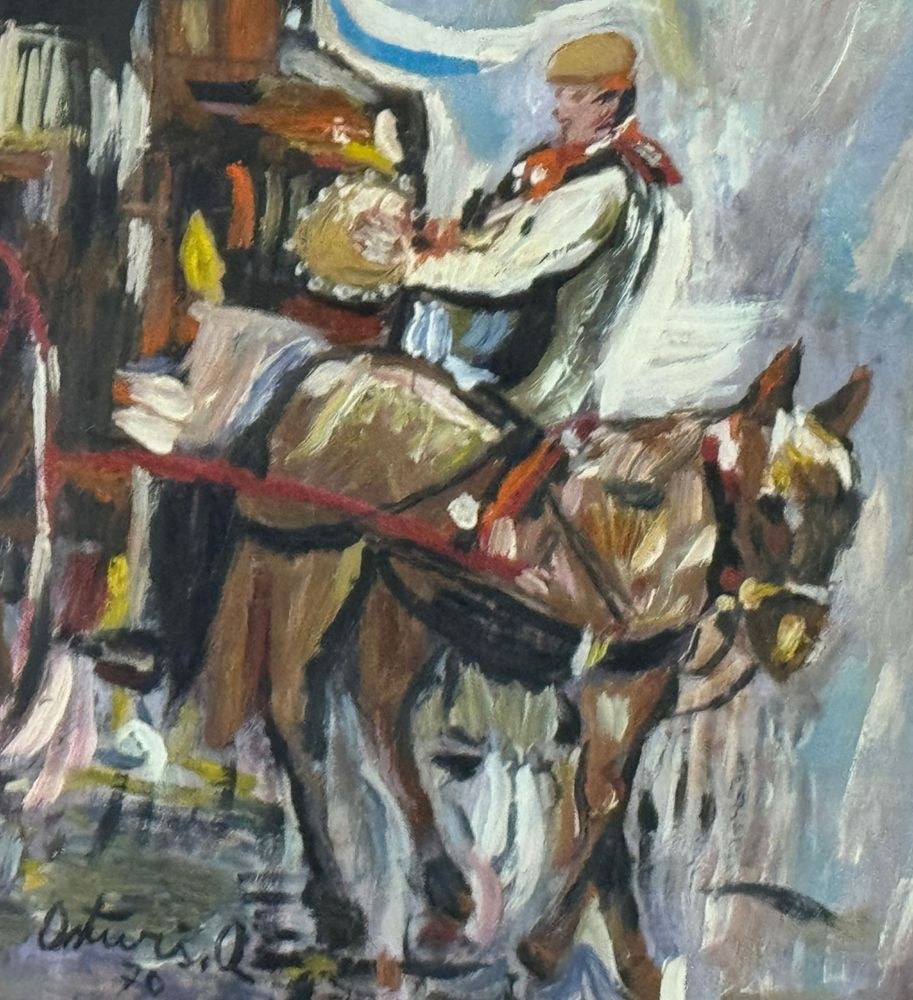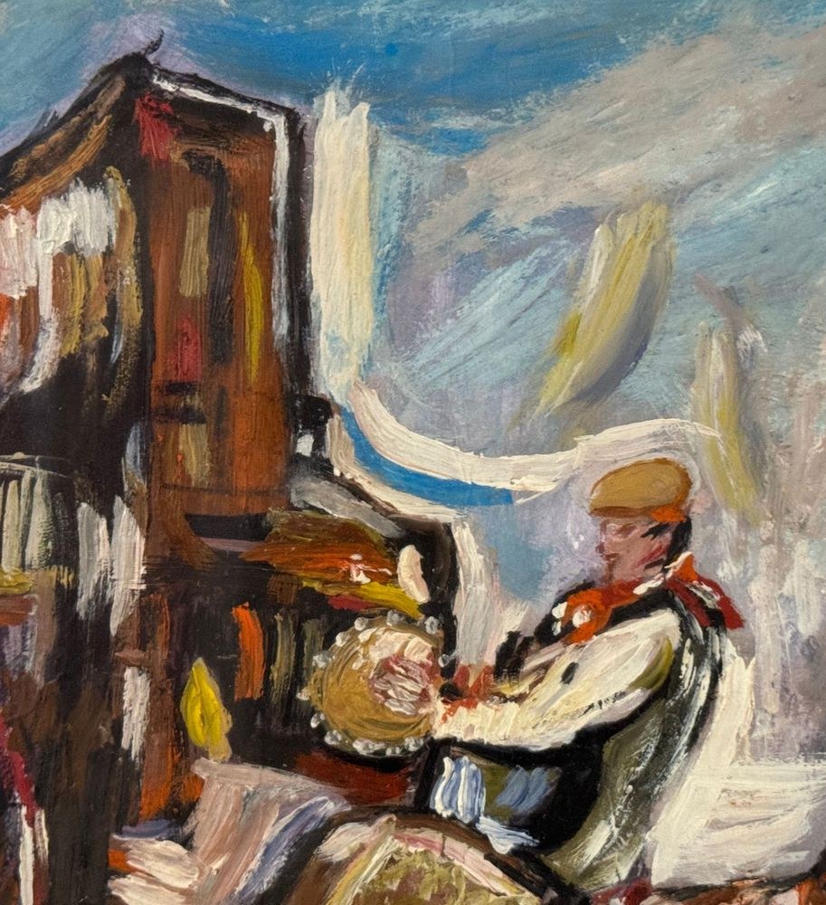 Oil painting on cardboard, 20th-century Italian school, depicting The Pianino. Dimensions including the frame: 40x50 cm. Inner frame dimensions: 25x32.5 cm. Signed in the lower left corner by Antonio Asturi (1904-1986). The artwork is in good condition.