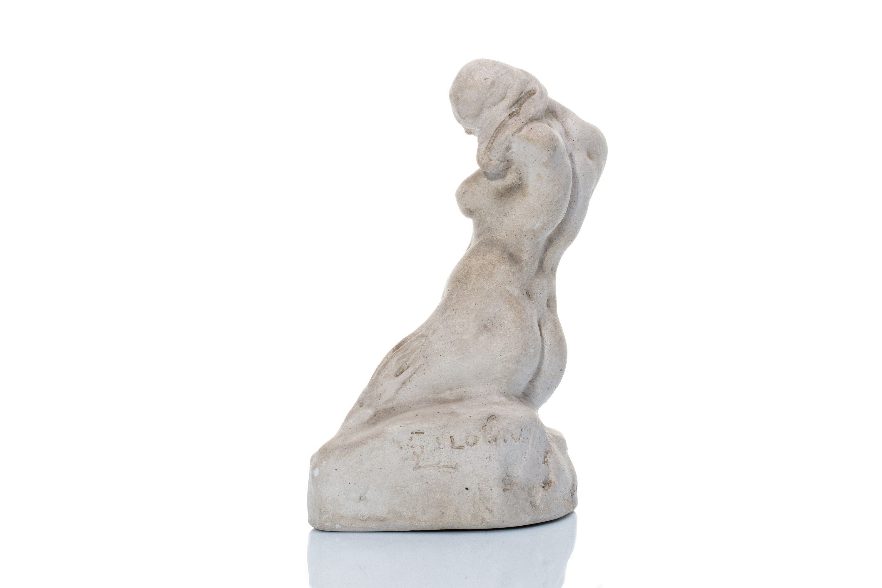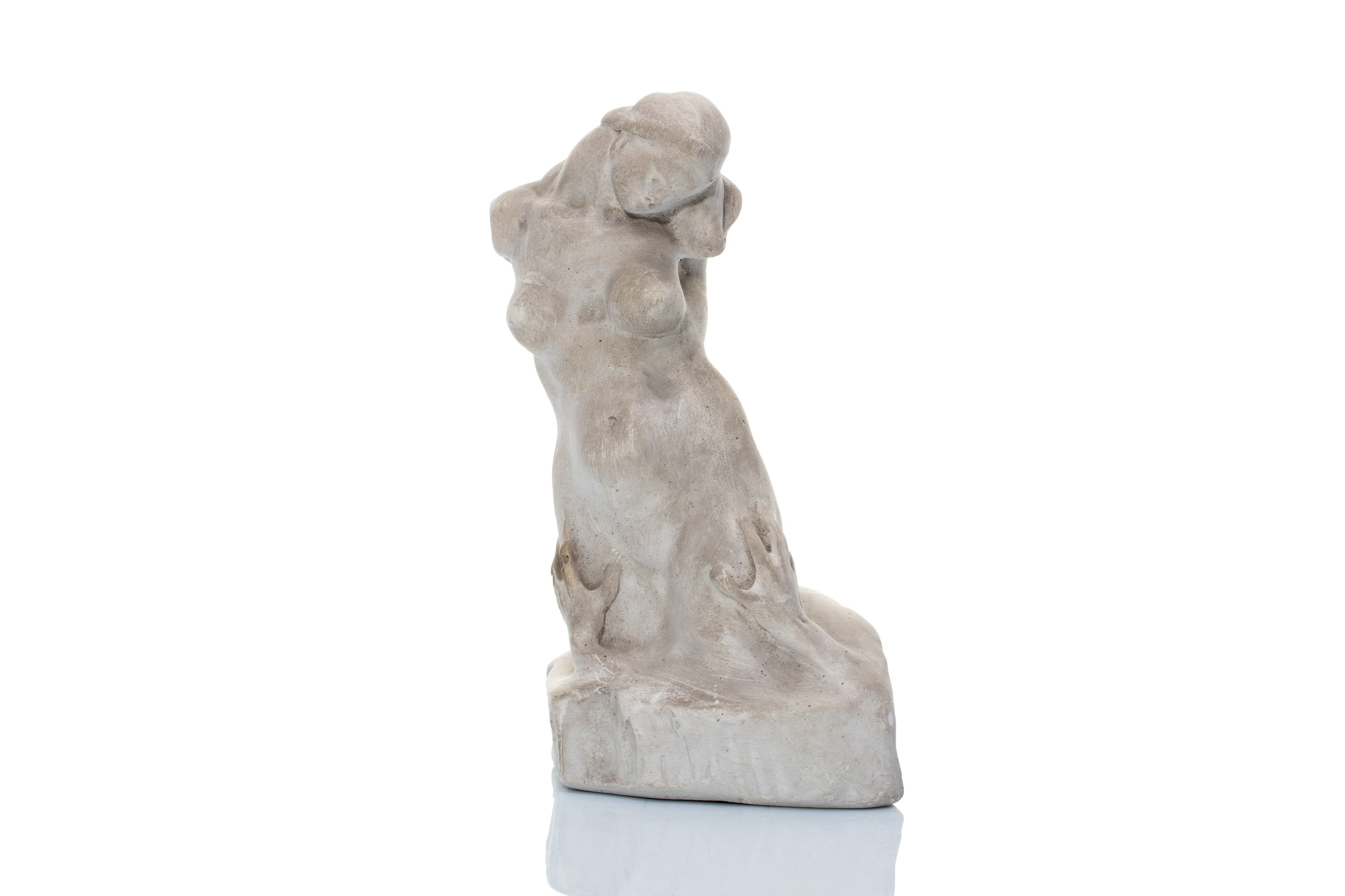 This work, called "The Touch of Fate" and made of plaster, belongs to the important sculptural works of the Czech artist Ladislav Saloun, who is best known for his monumental work on the Jan Hus Memorial in Old Town Square in Prague. "Touch of Fate" embodies his fascination with human existence, destiny and man's struggle with the inevitable forces of life. Typical for Saloun is the sensitive processing of matter, which here resulted in a subtle, almost ethereal rendering of the female body in motion, with a reference to impressionism, which also influenced Czech sculptural work at the turn of the 19th and 20th centuries. Plaster as a material gives the work lightness, which is complemented by a dramatic, even expressive approach to the form, which enhances the sense of fate and inevitable fate that the work conveys. The sculpture is not only an example of Saloun's technical mastery, but also an expression of the deep human and philosophical perception that dominated his work.