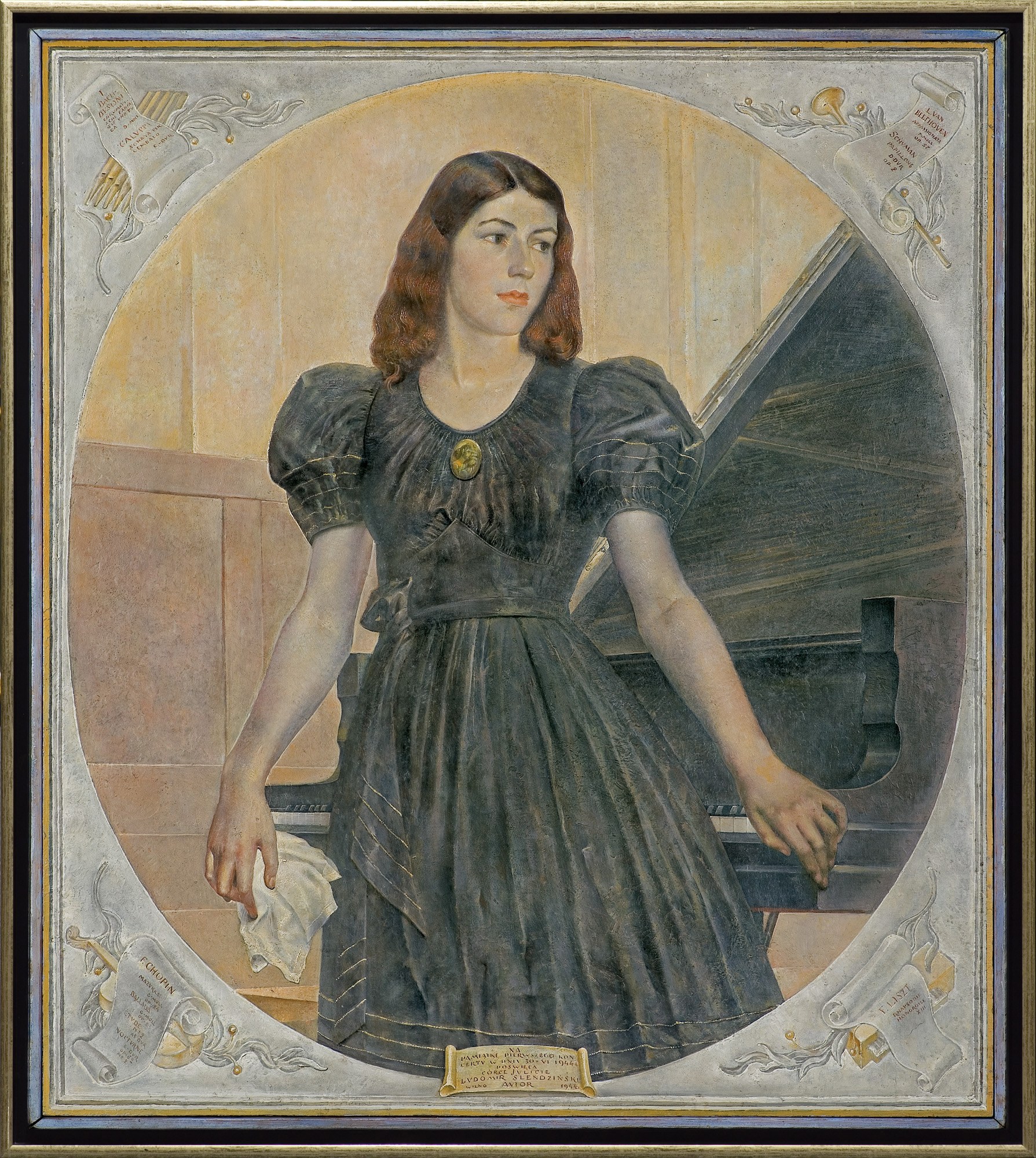 Julita Anna Sleńdzińska (1927-1992), córka artysty, była wybitną pianistką i klawesynistką, a także – obok żony Ireny – jego ulubioną modelką. Portretował ją wielokrotnie – jako dziecko w wózeczku, dorastającą dziewczynkę, a później młodą kobietę. Julita od roku 1938 studiowała w Konserwatorium Wileńskim, w tym w latach 1941-1944 w klasie prof. Stanisława Szpinalskiego. Jej pierwszy publiczny koncert, uznany za egzamin dyplomowy, odbył się w Filharmonii Wileńskiej 30 czerwca 1944, jeszcze za okupacji niemieckiej. W jego programie znalazły się, m.in. utwory Chopina, a sam koncert dla wileńskiej społeczności był wydarzeniem o podniosłej, patriotycznej wymowie. Portret Julity jest pamiątką tego koncertu. Utrzymany w stylu art deco, malowany jest z wyczuwalną czułością i ojcowską dumą. Artysta podkreślił łagodne rysy twarzyczki młodziutkiej, siedemnastoletniej pianistki, jej wdzięczną sylwetkę, elegancką sukienkę i długie, rozpuszczone włosy, impastowo modelowane w farbie. Po latach, w swoim Pamiętniku, cyklu podwójnych obrazów opisujących najważniejsze wydarzenia z życia, malowanym w latach 1965-1967, umieścił także i ten portret Julity.