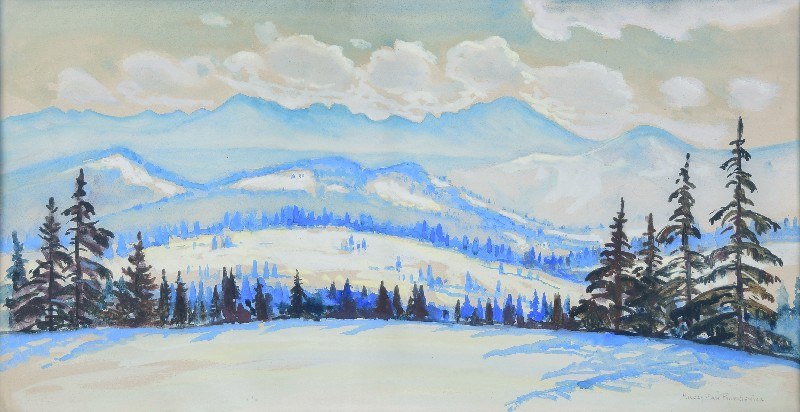 akwarela, gwasz, papier; 32 x 61,5 cm (w świetle oprawy);