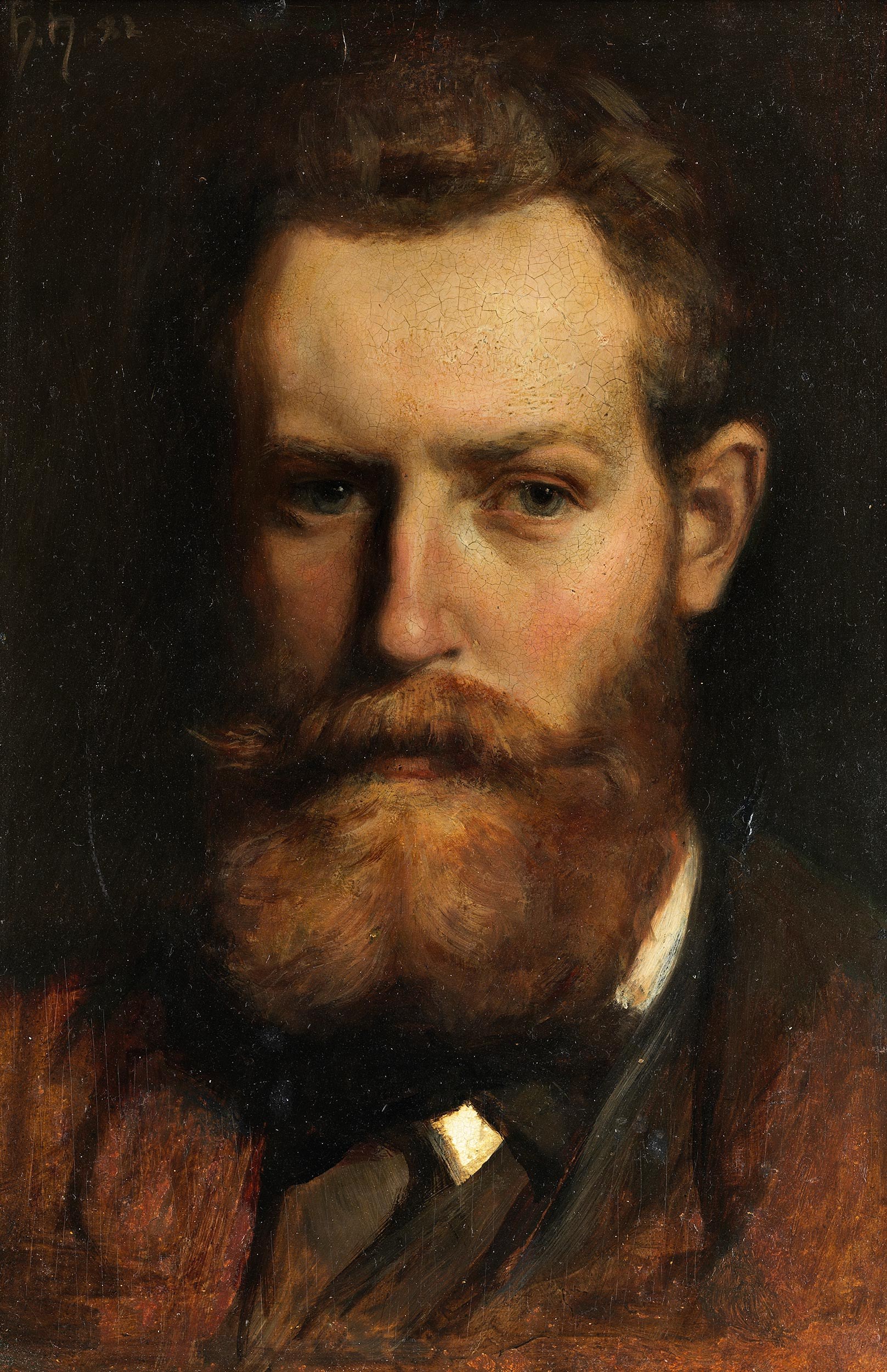 Links oben monogrammiert „HH“ und datiert „(18)82“. Verso mit Etikett eines Münchner Malmittelherstellers und Vermutung über den Dargestellten.