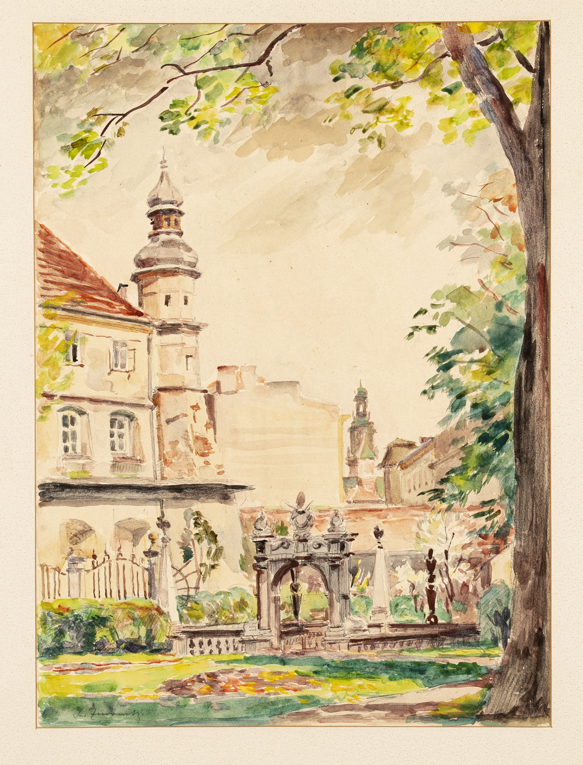 Akwarela, papier; wym. w świetle pp.: 34,5 x 25 cm; sygn. oł. l. d.: St. Żurawski