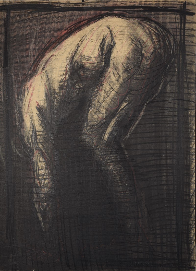 pastel, węgiel, kredka, papier; 70 x 50 cm;
