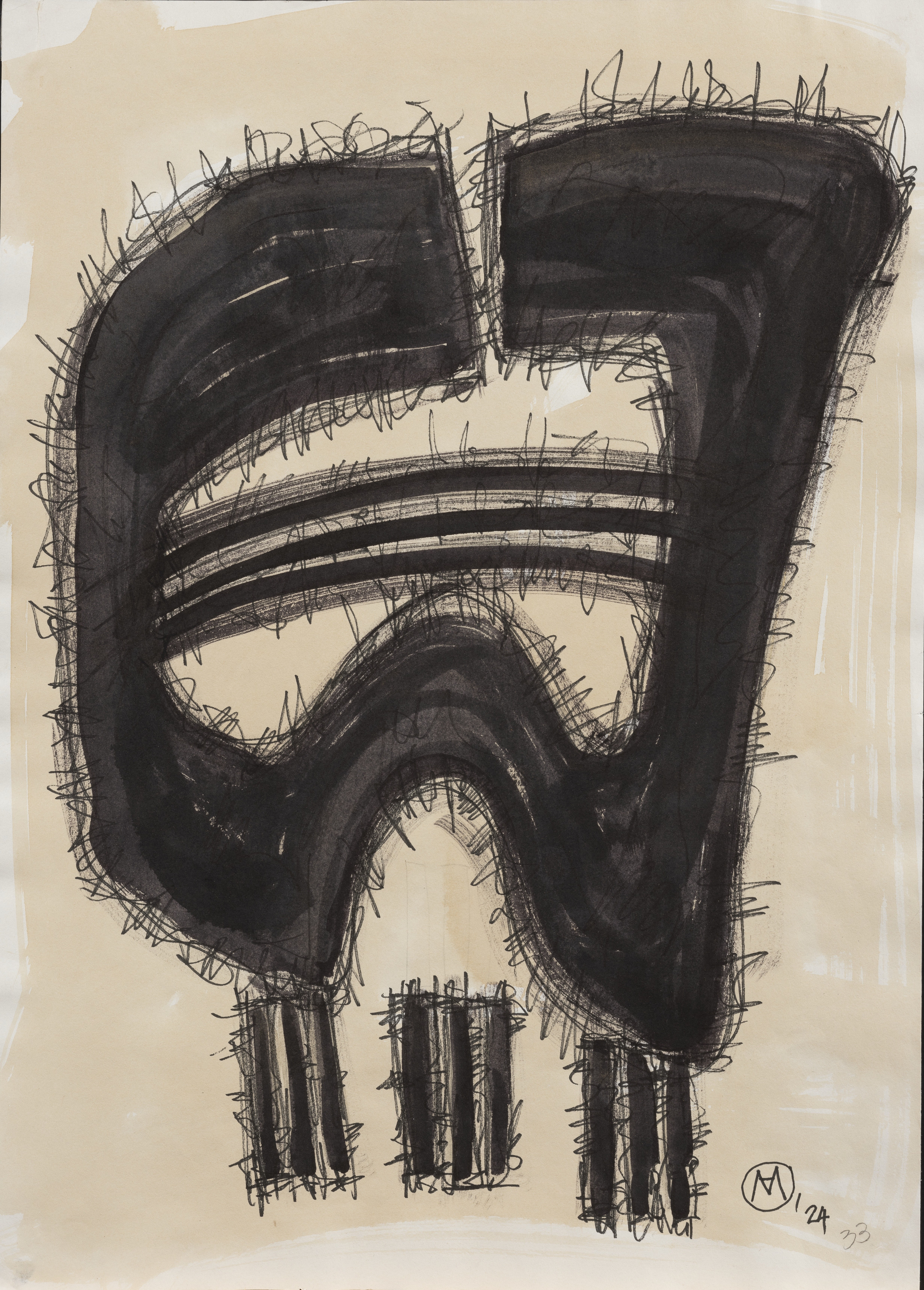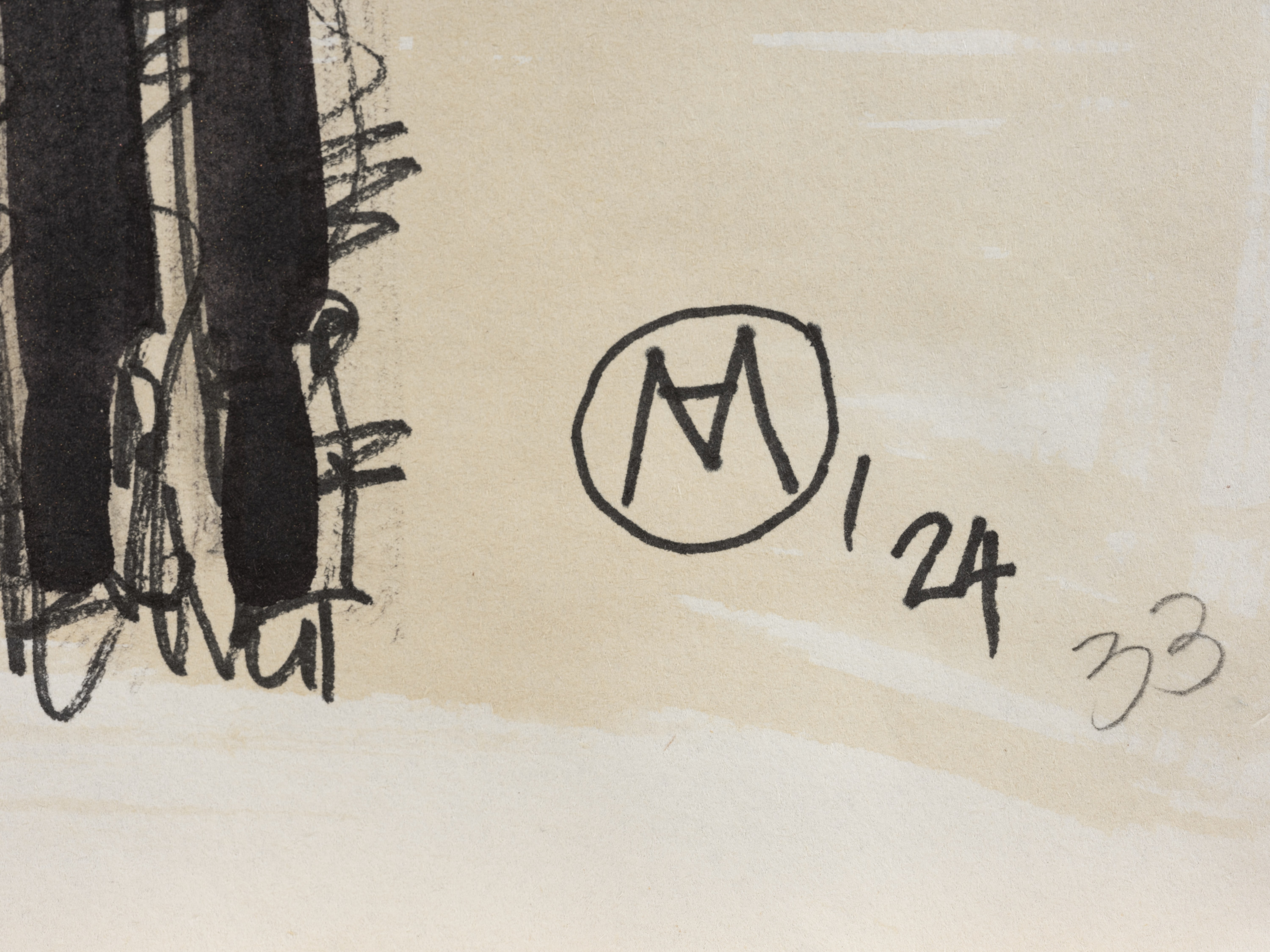 Sygnatura: monogram "A M" w okręgu, czarnym tuszem, poniżej oznaczenie '24
