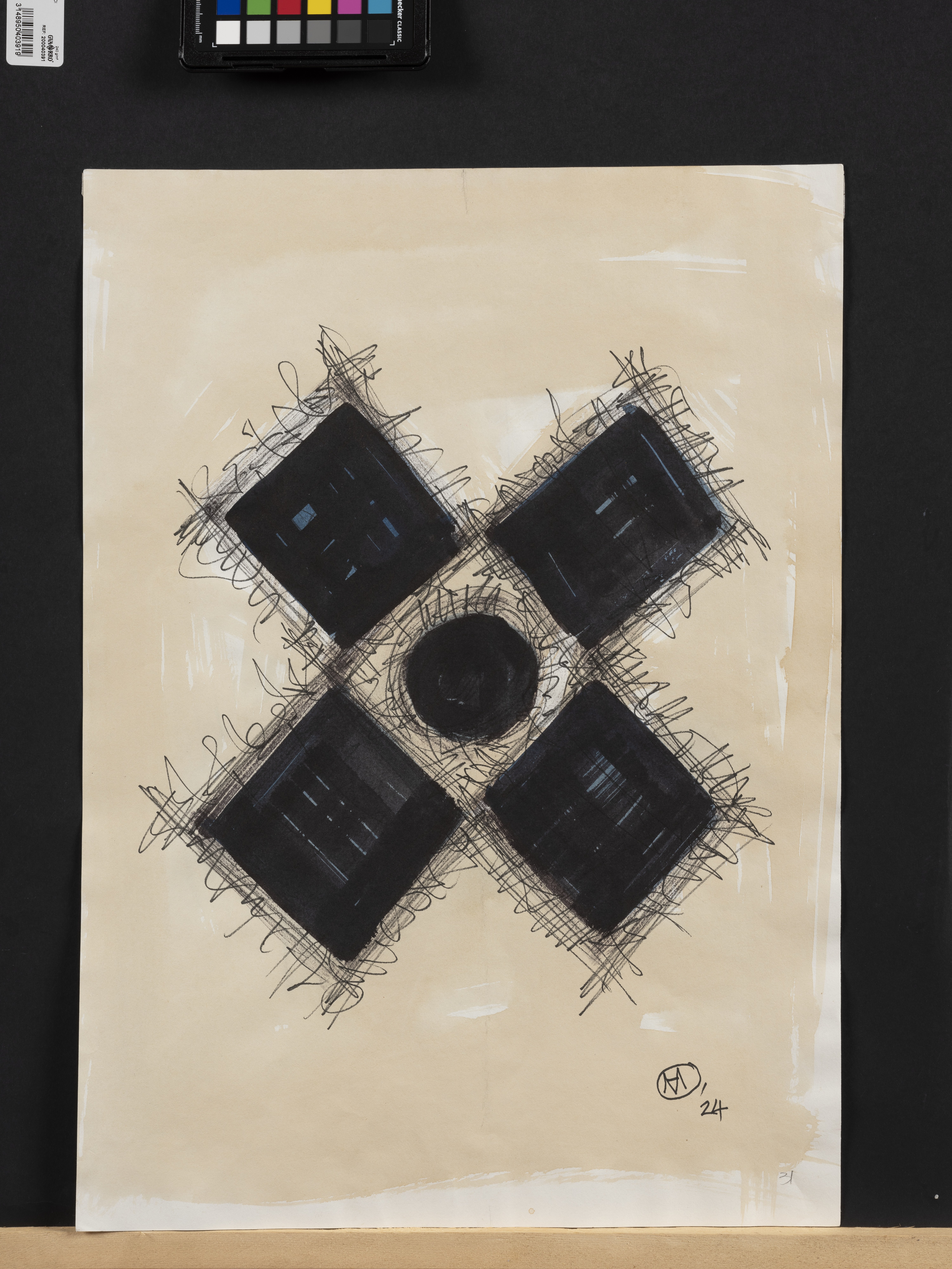 Sygnatura: monogram "A M" w okręgu, czarnym tuszem, poniżej oznaczenie '24