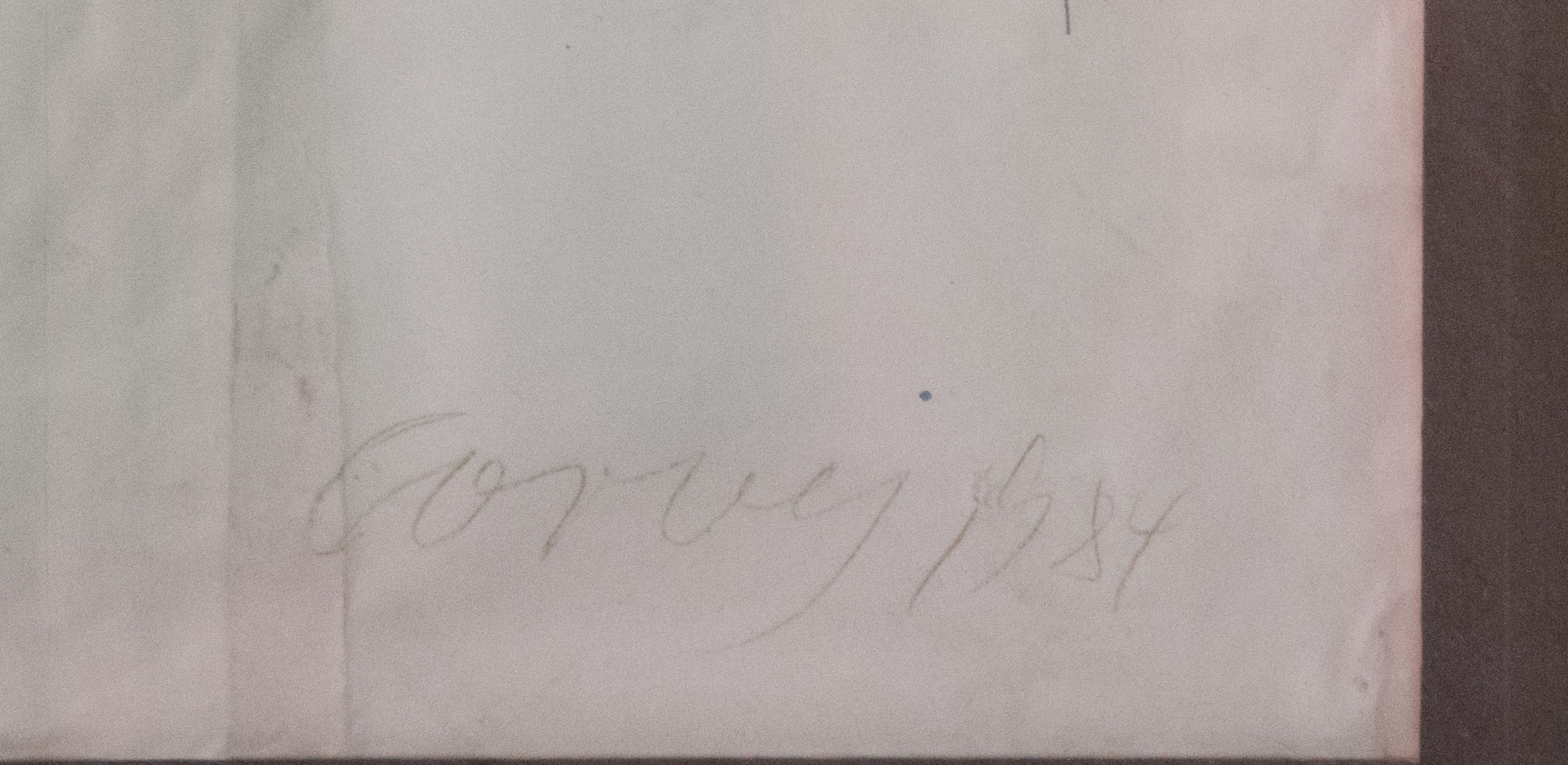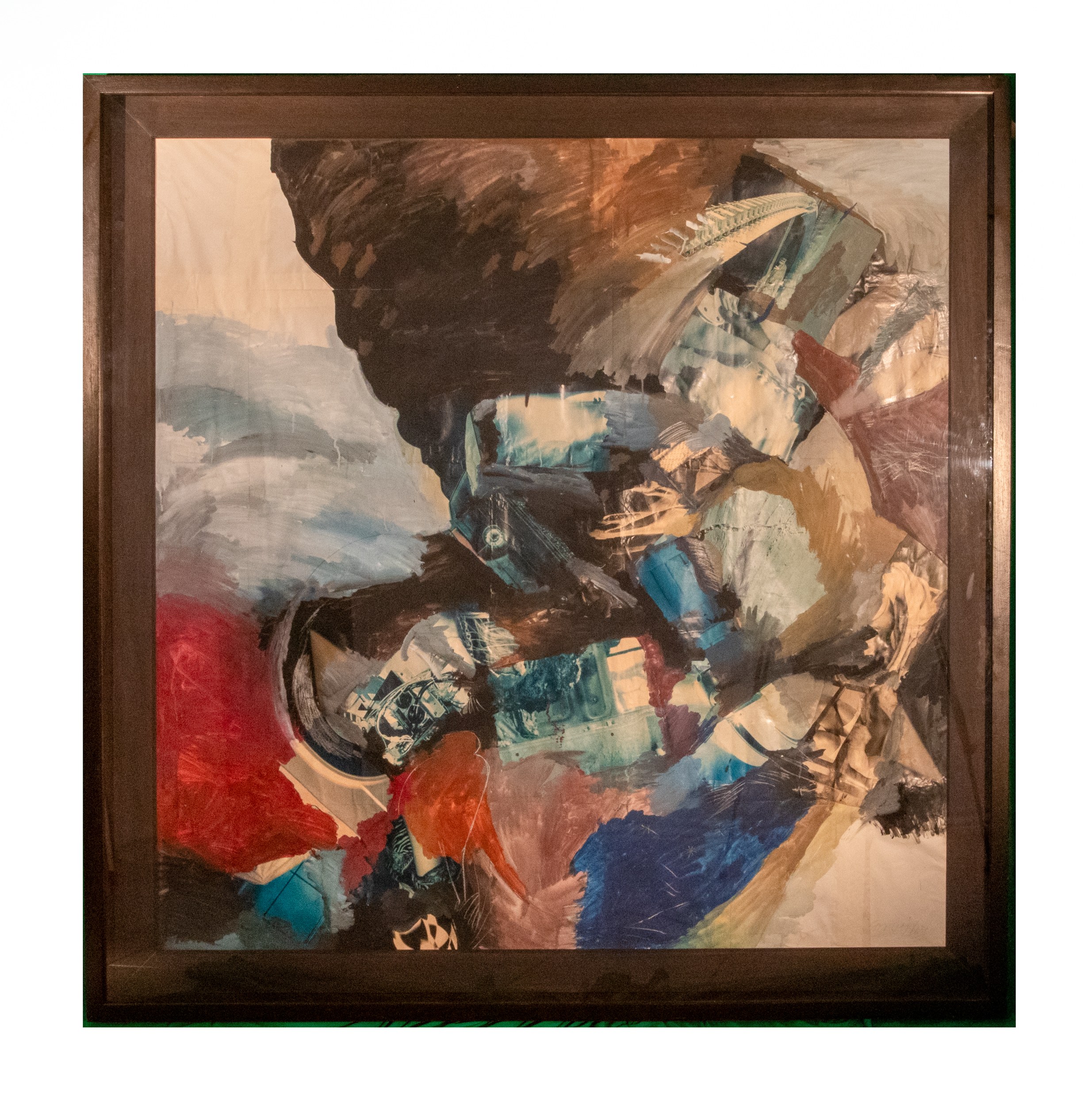 Abstract composition, mixed media and collage on paper, approx. 138 cm x 138 cm visible dimensions, signed, dated 1984, partially warped, slightly faded