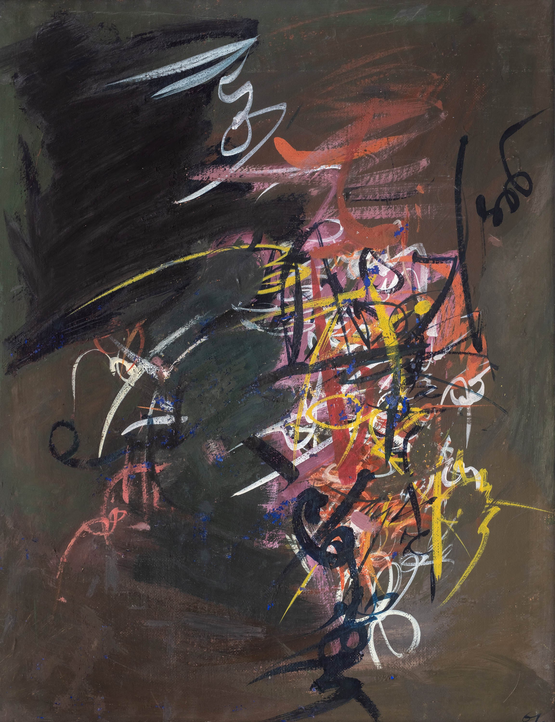 tempera, gwasz, płyta, 80,5 x 60,5 cm, sygnowany i opisany na odwrocie: 'Bez tytułu | 1961 | Ireneusz Pierzgalski | 80,5 x 60,5 cm | gwasz - tempera - płyta pilśn.'