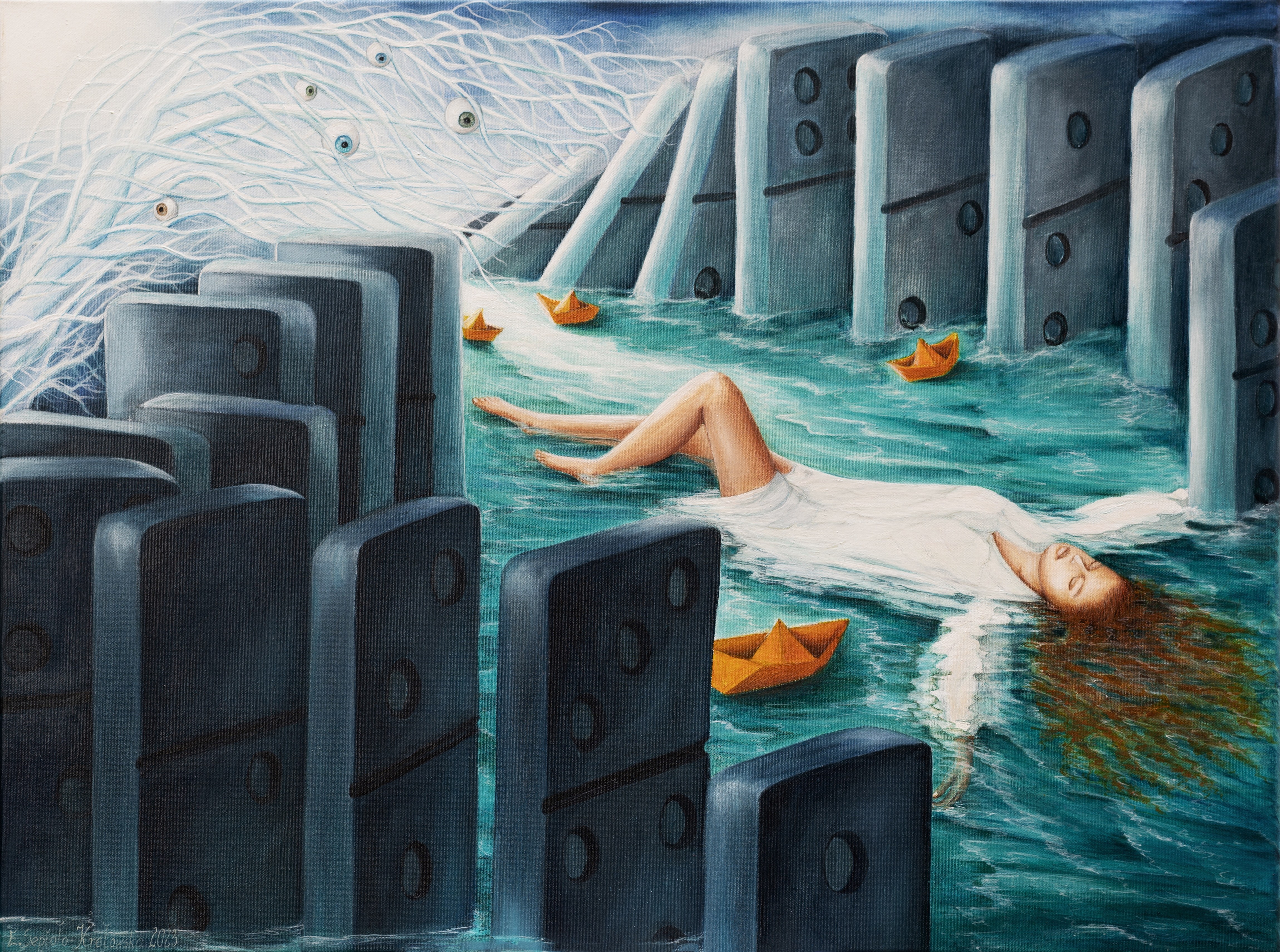 Ewa Sepioło - Krełowska: "...z utęsknieniem czekam na weekendy. Wtedy od rana do wieczora mogę spokojnie robić to, co kocham. Maluję pod wpływem emocji i różnych wydarzeń. Często obrazy są odzwierciedleniem snów. Niektóre powstają na bieżąco, inne znów są głęboko przemyślane, powstają w głowie miesiącami. Często zmieniam też pierwotną koncepcję, co uważam za bardzo intrygujące. Nie mogę być pewna, że to co namaluję jednego dnia zostanie, czy zmieni się w coś zupełnie innego...