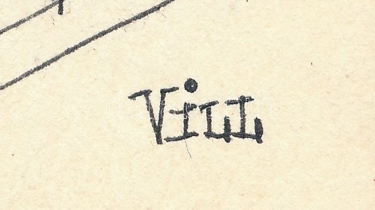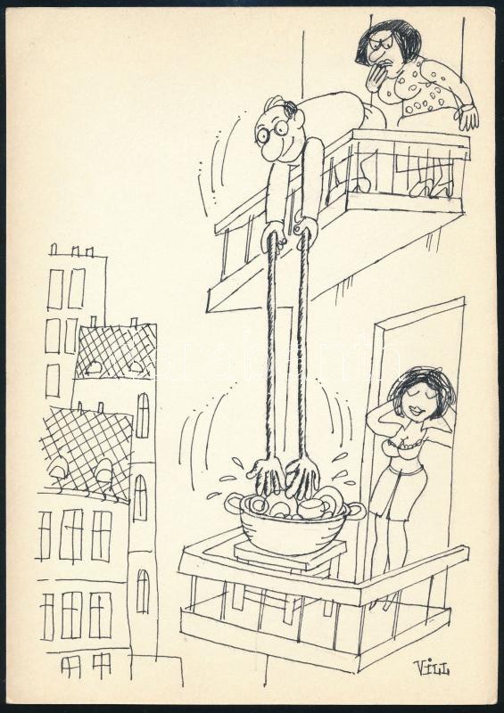 Földes Vilmos (1942-): Szomszédok (karikatúra, cím nélkül). Tus, papír, jelzett. 21,5×15 cm.