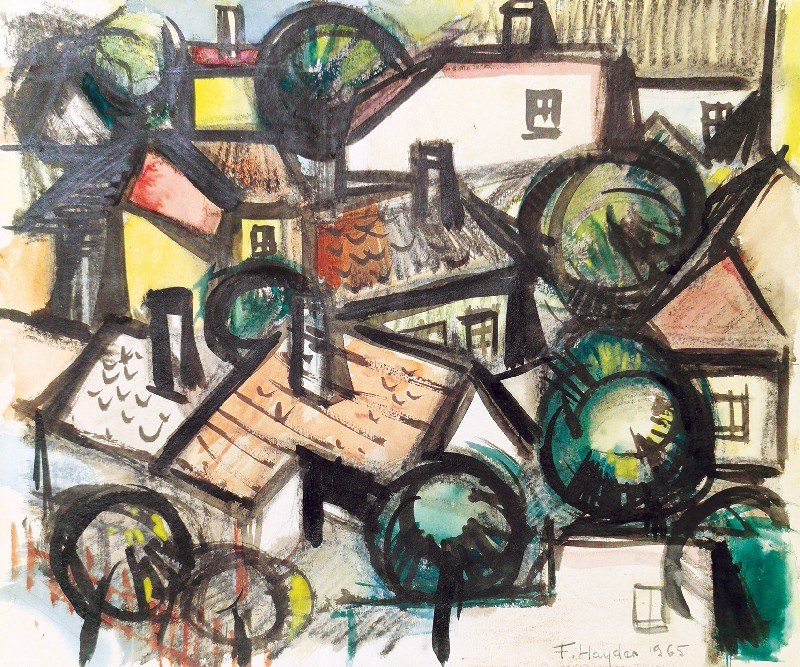 akwarela, tusz lawowany, karton; 32 x 39 cm;