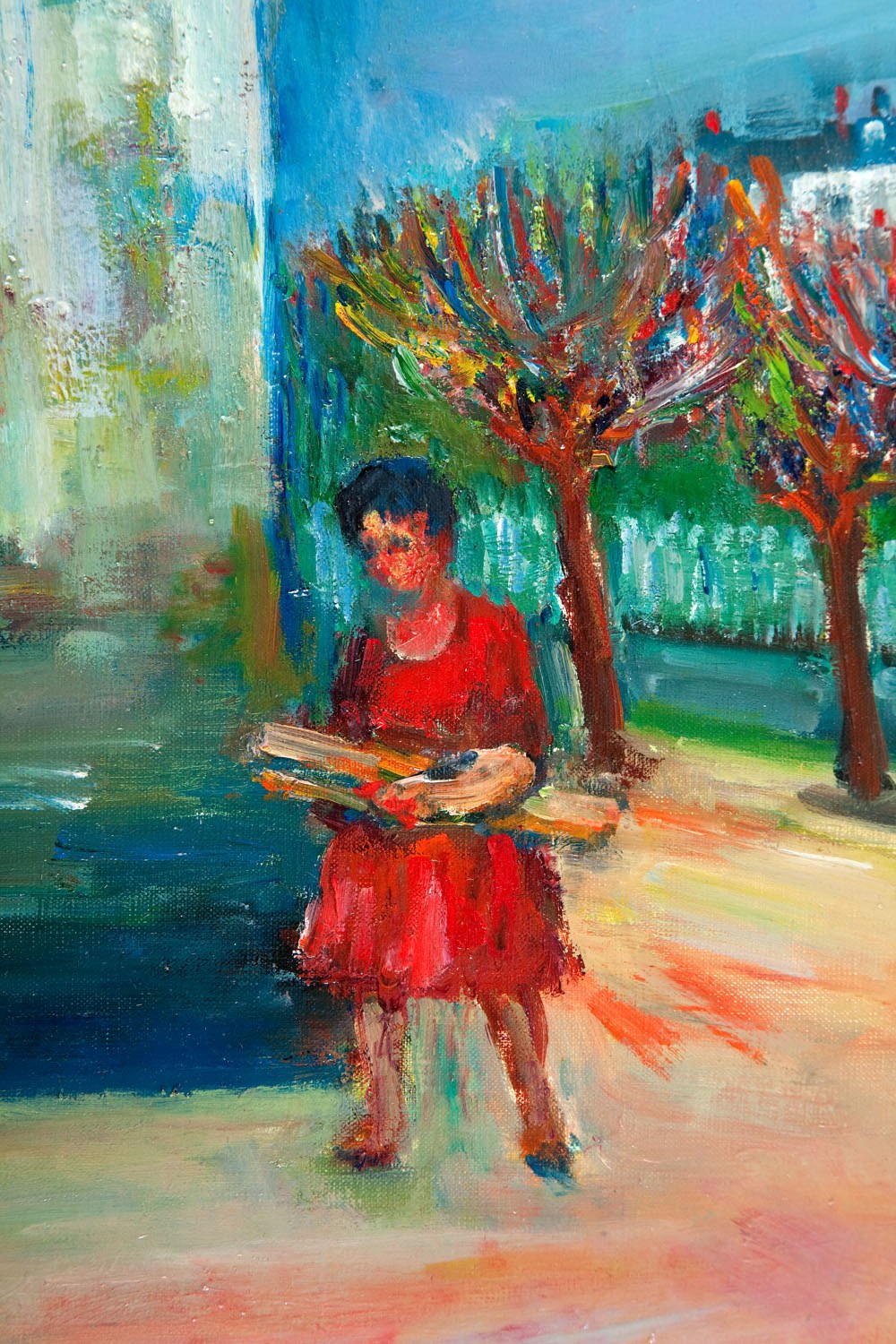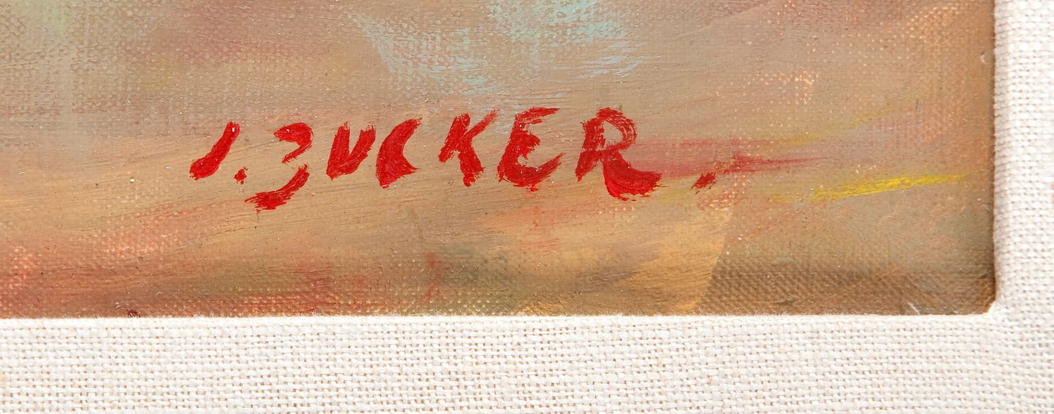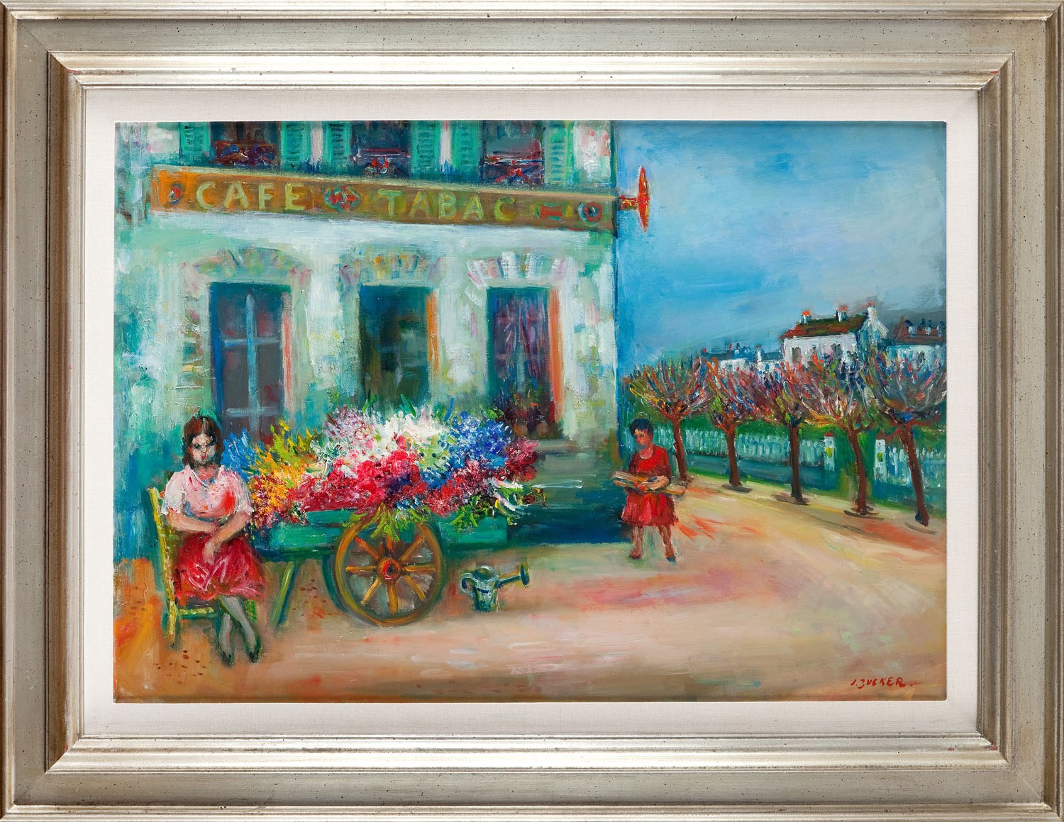 na odwrociu liczne nalepki z numerami oraz papierowa nalepka z opisem: 'Flower Vendor | (oil) | By Jacques Zucker'