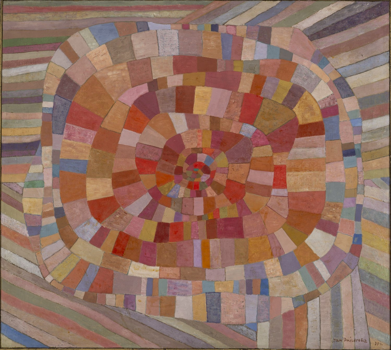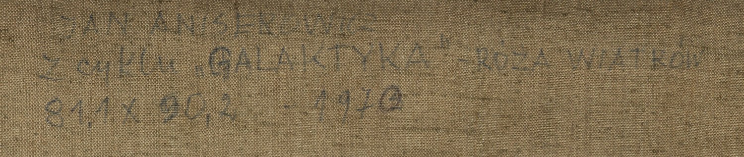 sygnowany, datowany i opisany na odwrociu: 'JAN ANISEROWICZ | z cyklu "GALAKTYKA" - RÓŻA WIATRÓW | 81,1 x 90,2 - 1970'